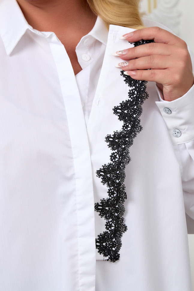 Блуза Ким в белом цвете с отстёгивающимся галстуком из премиального кружева. Состав 85% Хлопок, 10% ПЭ, 5% Эластан. Блуза немного на удлинение, можно носить как тунику. Вточной рукав с глубокой проймой. Данная блуза прекрасно сядет на любую фигуру. Шикарный выбор для стильной дамы!