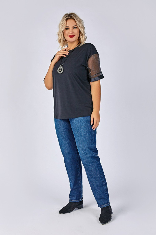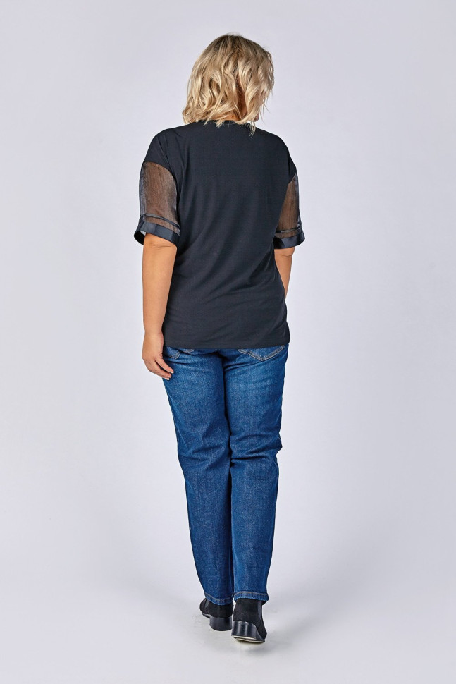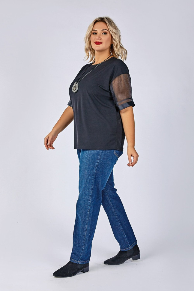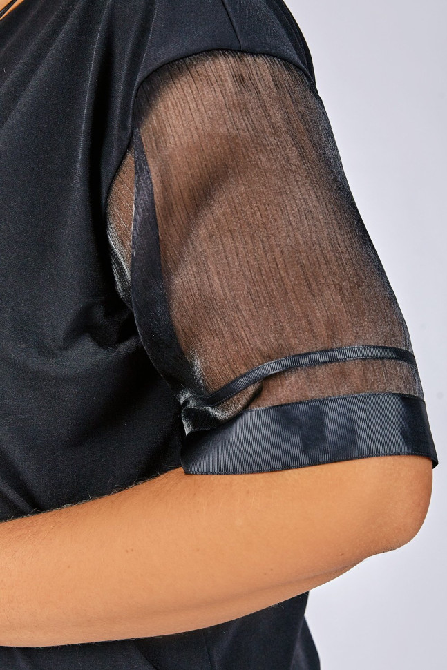 Блуза полуприлегающего силуэта. Вырез горловины круглый. Рукава из органзы по низу оформлены тесьмой. Создаст нарядный и элегантный образ.