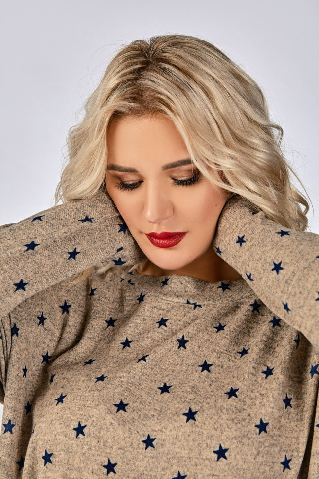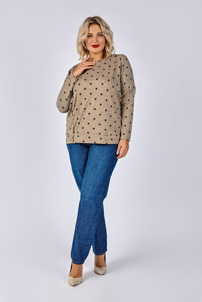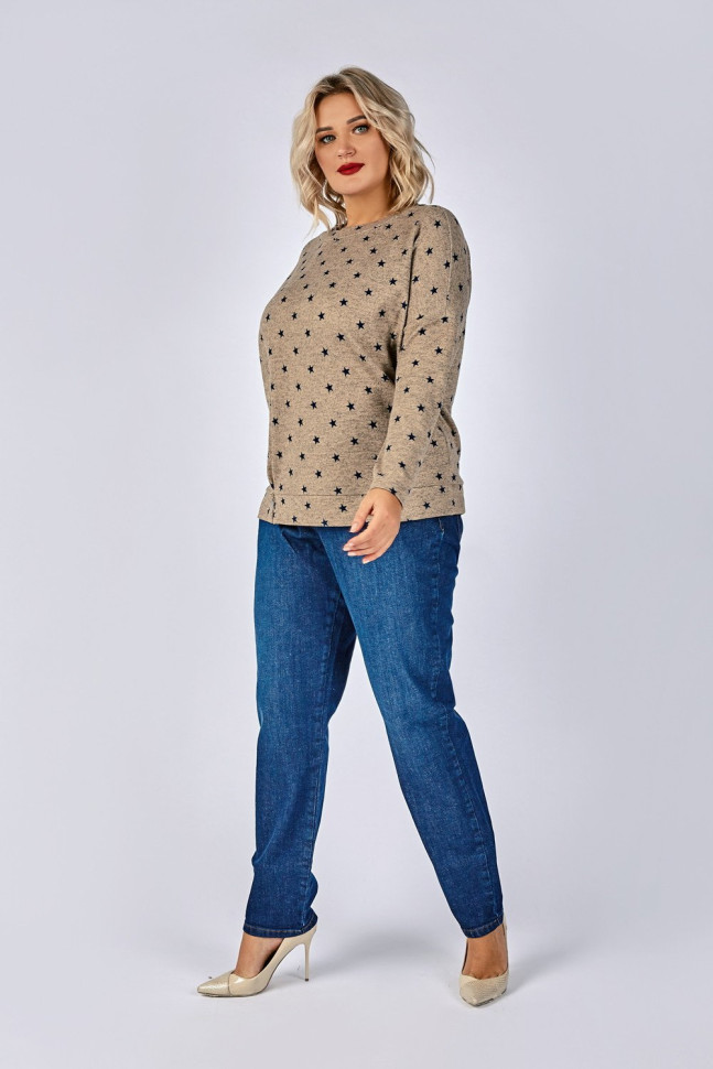 Трикотажная блуза полуприлегающего силуэта. Круглая горловина окантована. Рукав длинный. Удобная, приятная к телу блуза для Вашего повседневного образа. Состав 100% Акрил