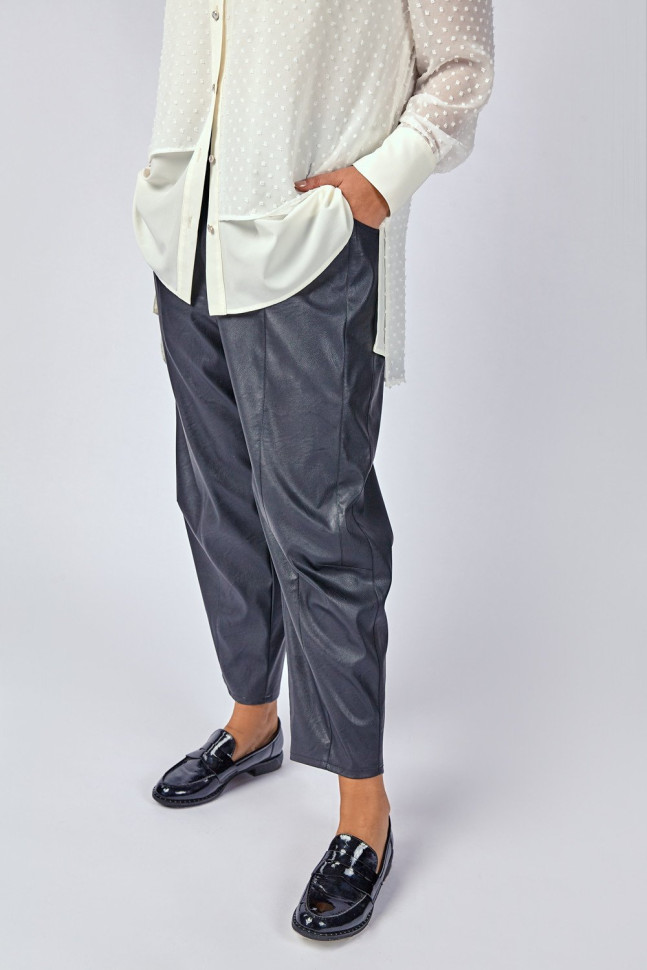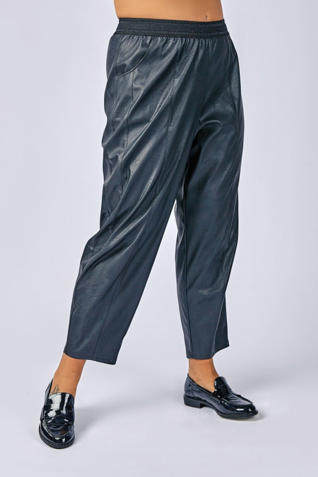 Брюки из экокожи смотрятся очень стильно, а также сделают вас звездой любой вечеринки. Пояс на резинке для комфортной посадке по фигуре. Состав 100% полиэстер, покрытие 100% полиуретан.