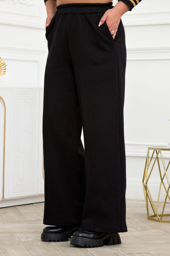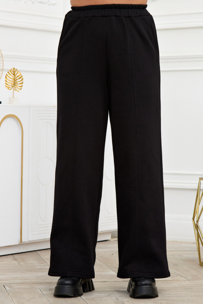 Брюки Нелли в черном цвете на холодное время года, материал утепленный 65% Хлопок, 35% Полиэстер. Крой прямой, с карманами, на вточной резинке. Отлично подойдут на любую фигуру. Они станут вашими любимыми брюками зимой! Отлично сочетаются с джемпером Нойс.