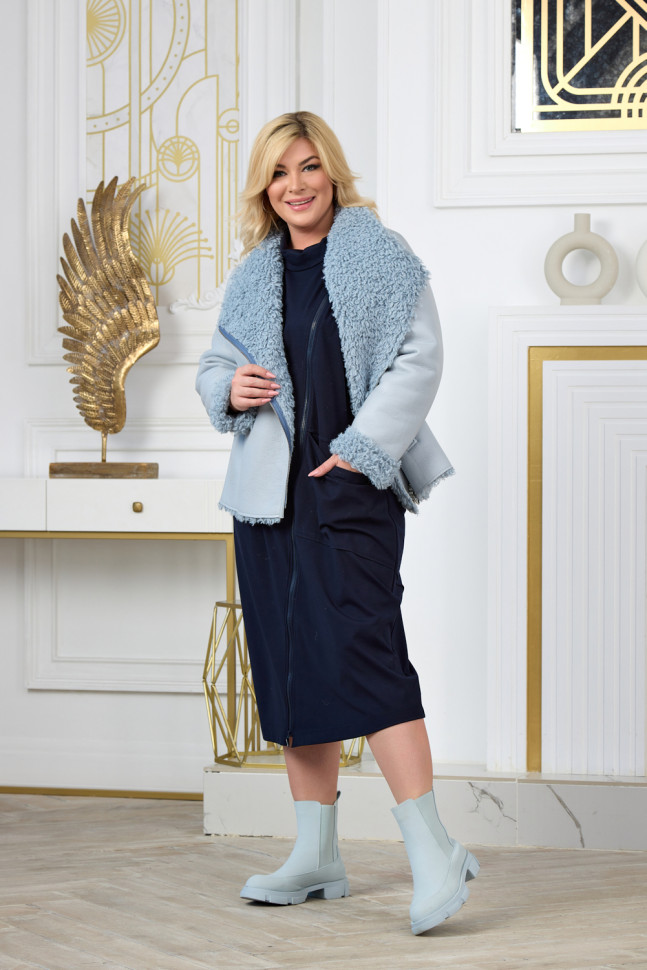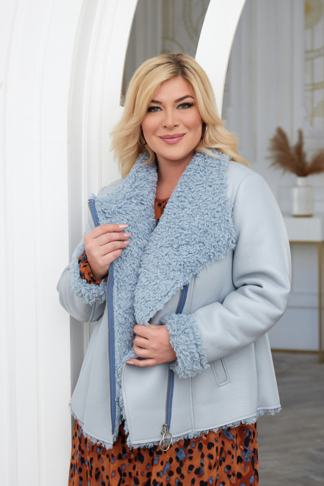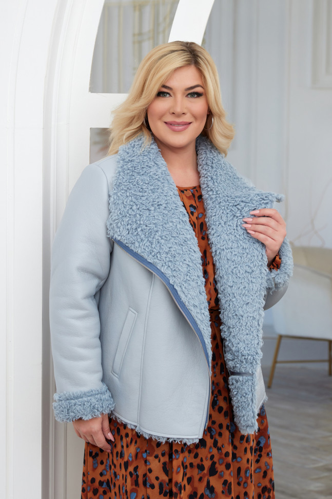 Дубленка Портель нежно голубого цвета с 48 по 64 размер. Выдерживает температуру до – 15 градусов. Состав гипоаллергенный, ЭКО кожа и ЭКО мех. Длинна авто - леди. Дубленка на молнии, с двумя глубокими удобными карманами, с красивым отложным воротником, который всегда освежит ваш образ. Рукав вточной, пройма глубокая. Она прекрасно будет сочетаться как с платьями, так и с брюками. Будьте стильными вместе с нами!Показать больше