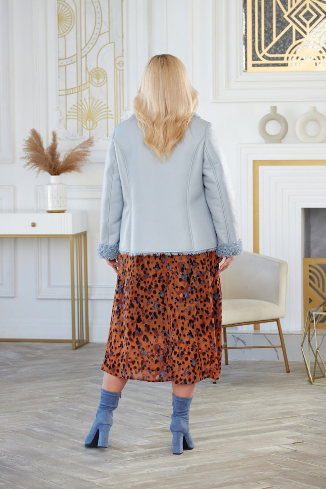 Дубленка Портель нежно голубого цвета с 48 по 64 размер. Выдерживает температуру до – 15 градусов. Состав гипоаллергенный, ЭКО кожа и ЭКО мех. Длинна авто - леди. Дубленка на молнии, с двумя глубокими удобными карманами, с красивым отложным воротником, который всегда освежит ваш образ. Рукав вточной, пройма глубокая. Она прекрасно будет сочетаться как с платьями, так и с брюками. Будьте стильными вместе с нами!