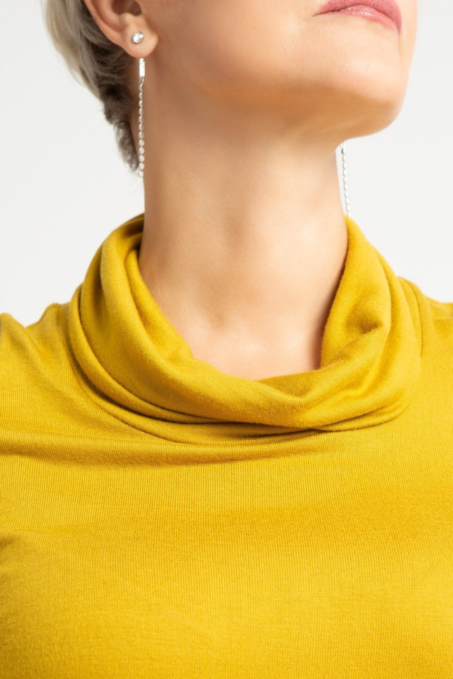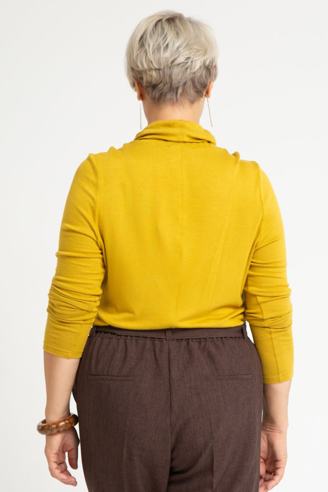Водолазка выполнена из трикотажного полотна. Воротник-небольшой "хомут". Рукав втачной, длинный.