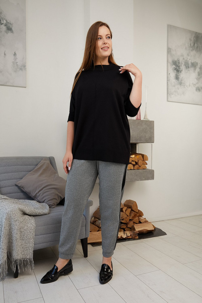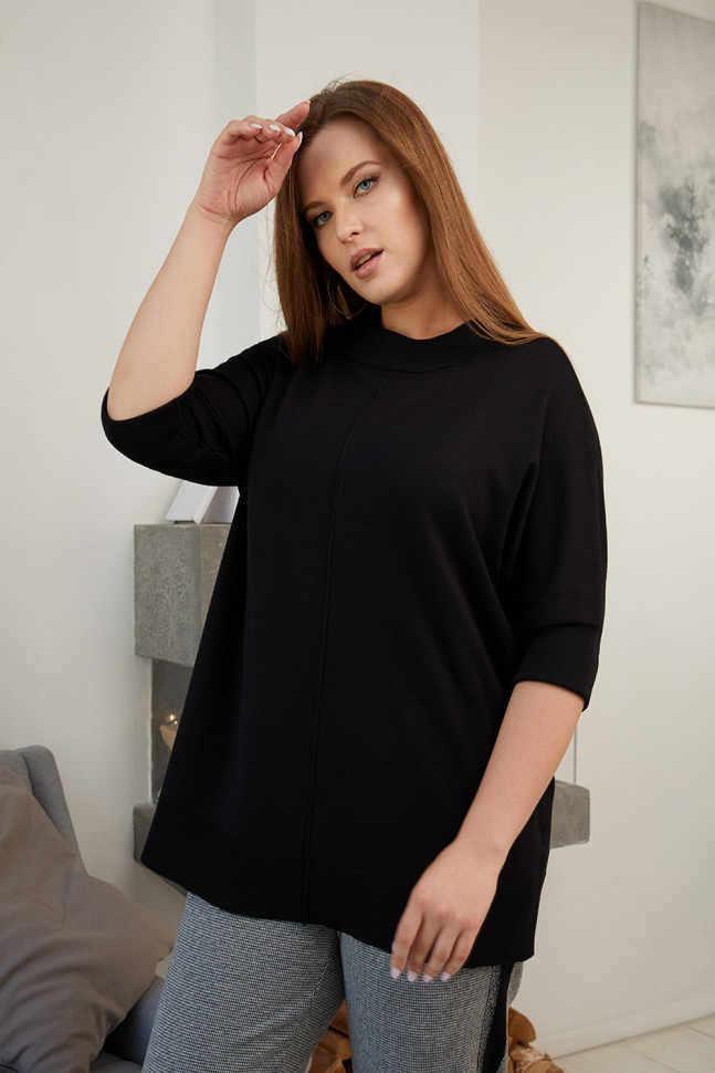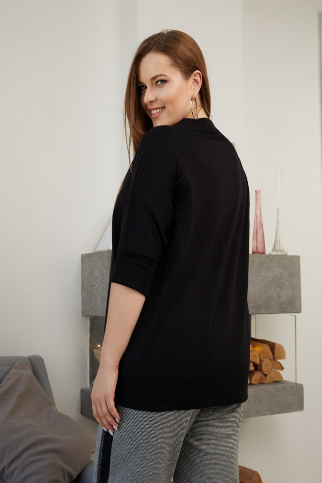 Трикотажный джемпер из мягкой натуральной пряжи. Свободный силуэт с цельнокроенным рукавом. Спереди провязан защип. Базовый цвет и форма позволяют комбинировать его со многими моделями.