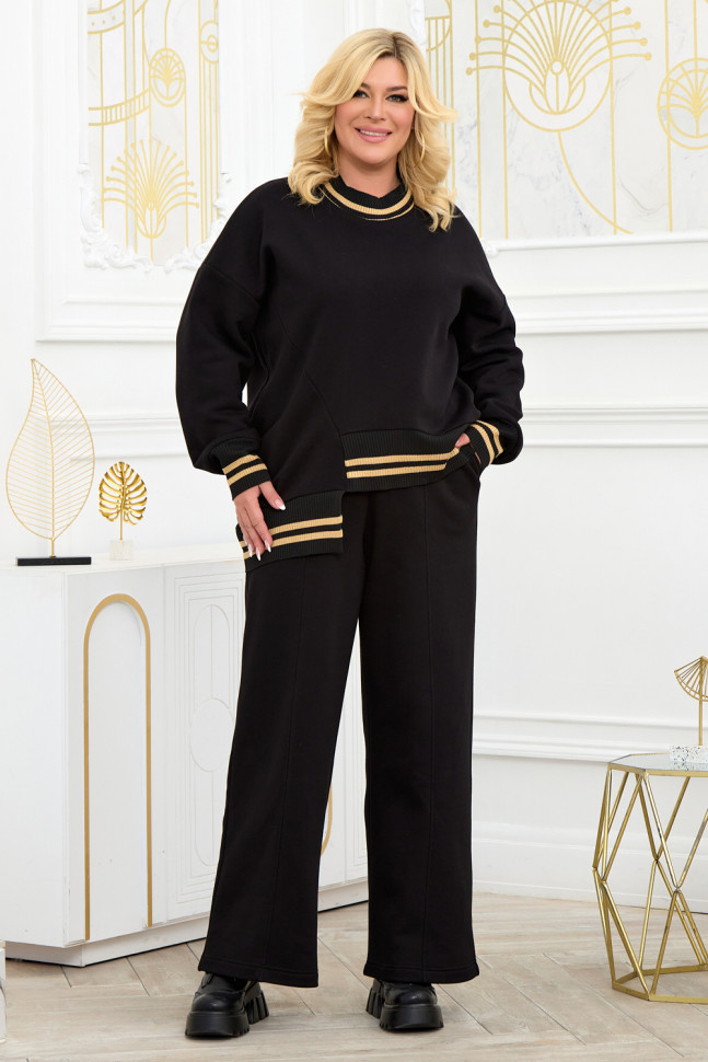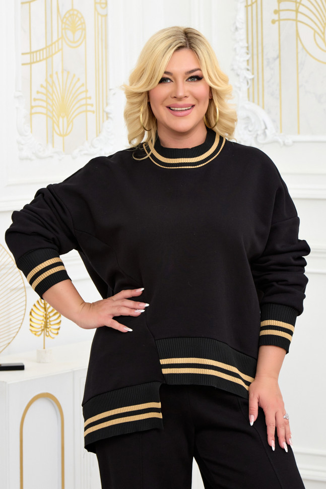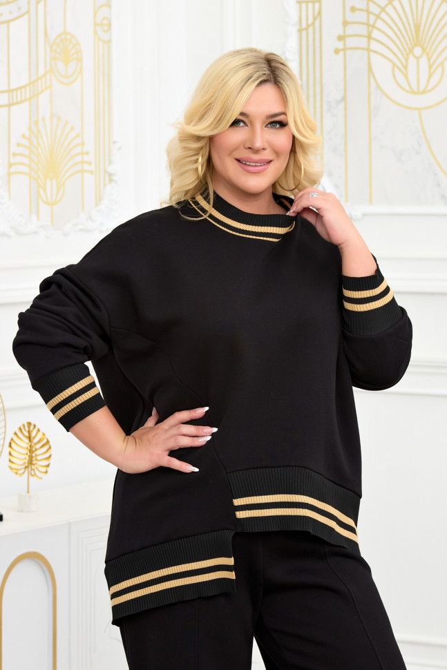Джемпер Нойс в черном цвете на подвязах. Неповторимый дизайн, свободный крой, утепленный материал 65% Хлопок, 35% Полиэстер – придаст комфорт в холодное время года и заменит вам приевшиеся свитера! К этому джемперу мы предлагаем брюки Нелли из этой же ткани!
