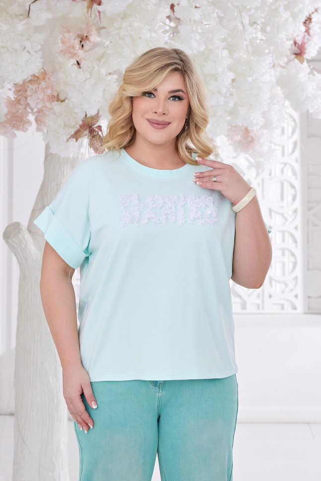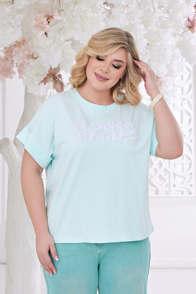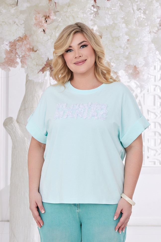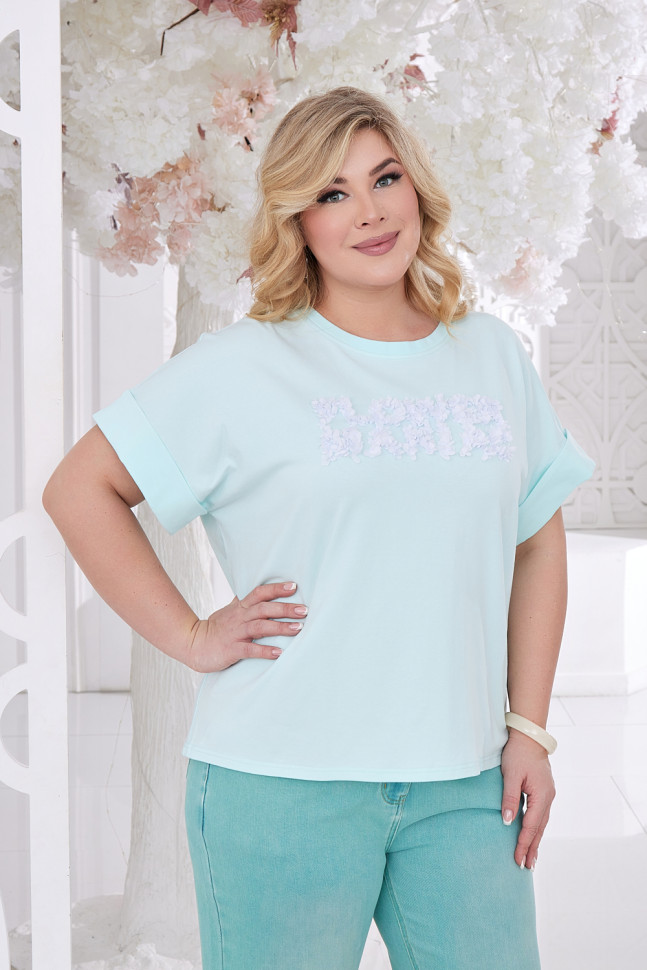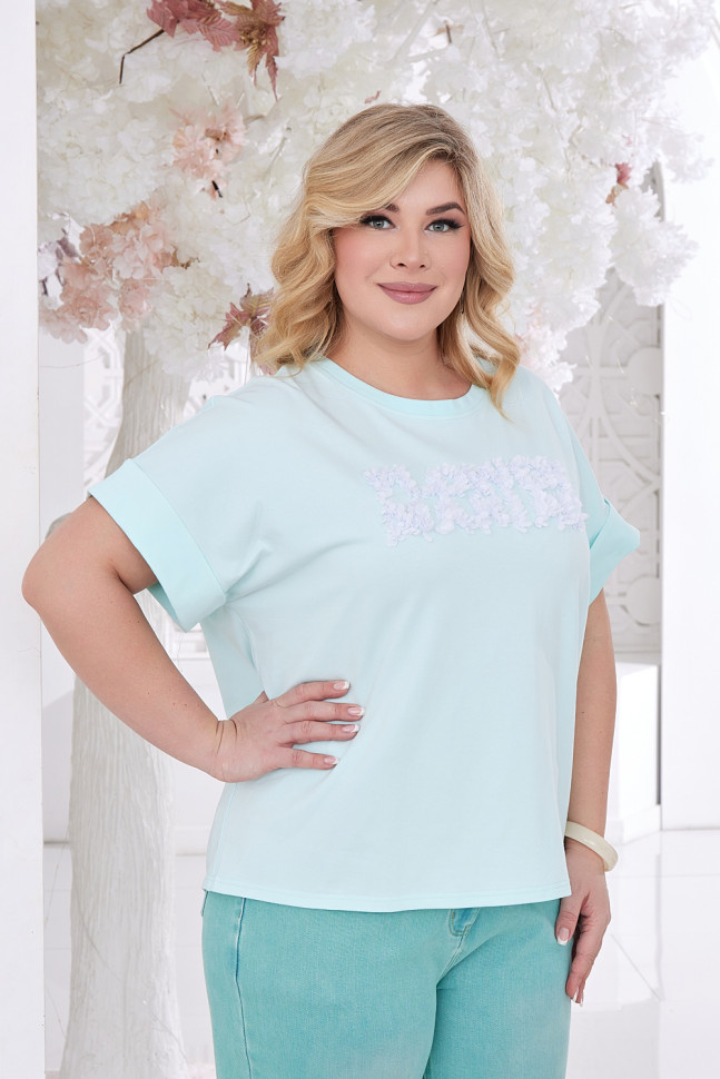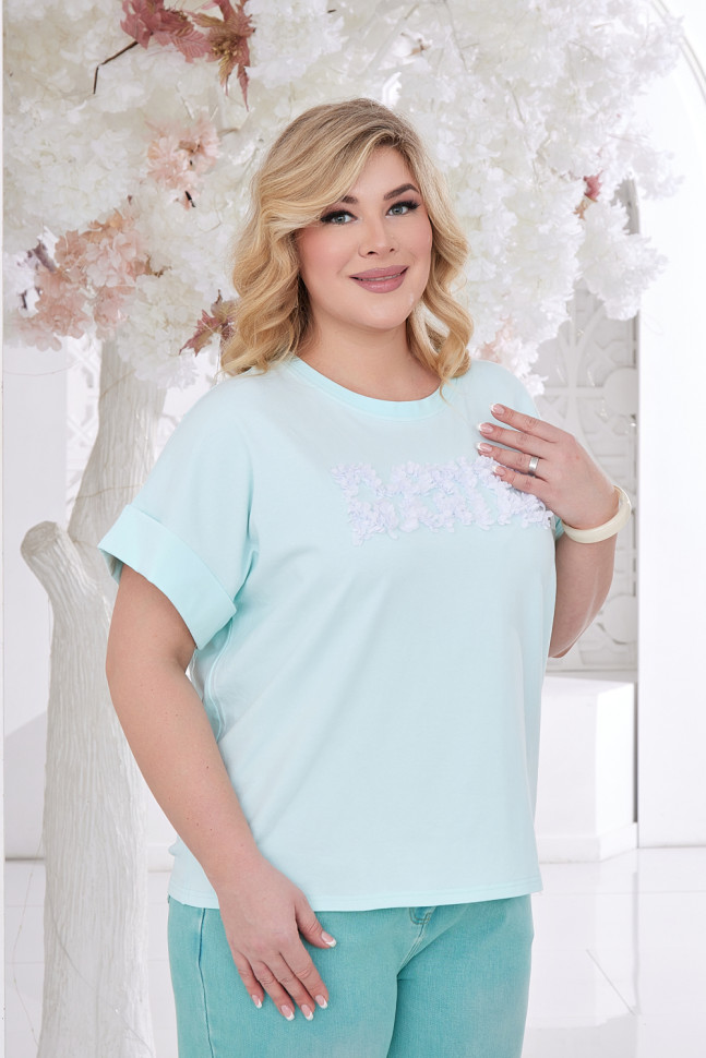Футболка Лила тр.52-250001-006-42 Flower Maniac голубой для женщин в интернет-магазине недорого. ► Выгодная цена и гарантия ► Описание, акции, скидки, фото, отзывы. Узнать цену и заказать по ☎ 8 (800) 500-38-08 или на сайте evagraffova.ru