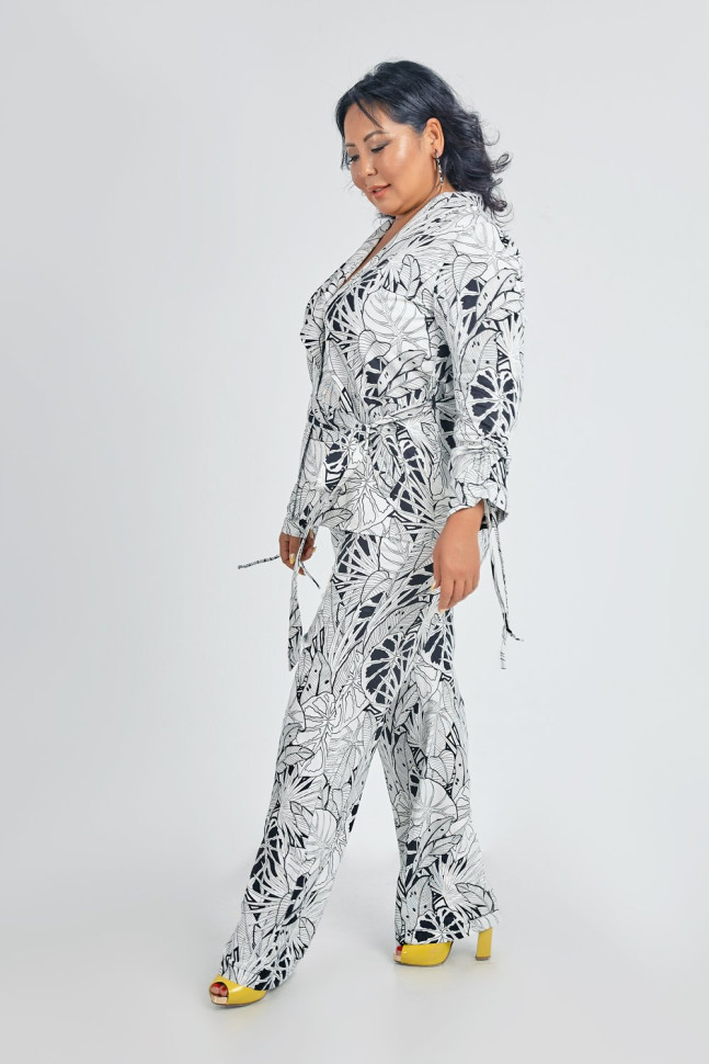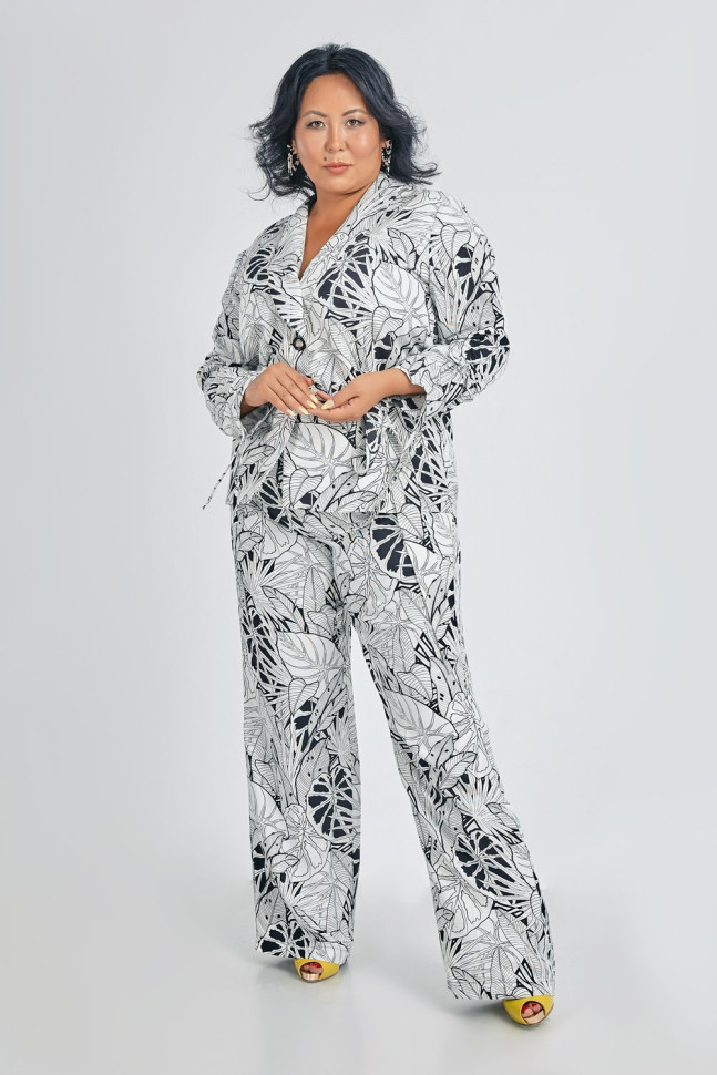Стильный комплект состоящий из брюк прямого кроя и жакета .