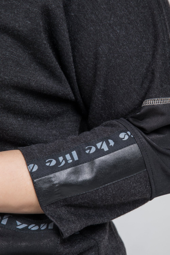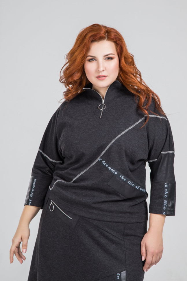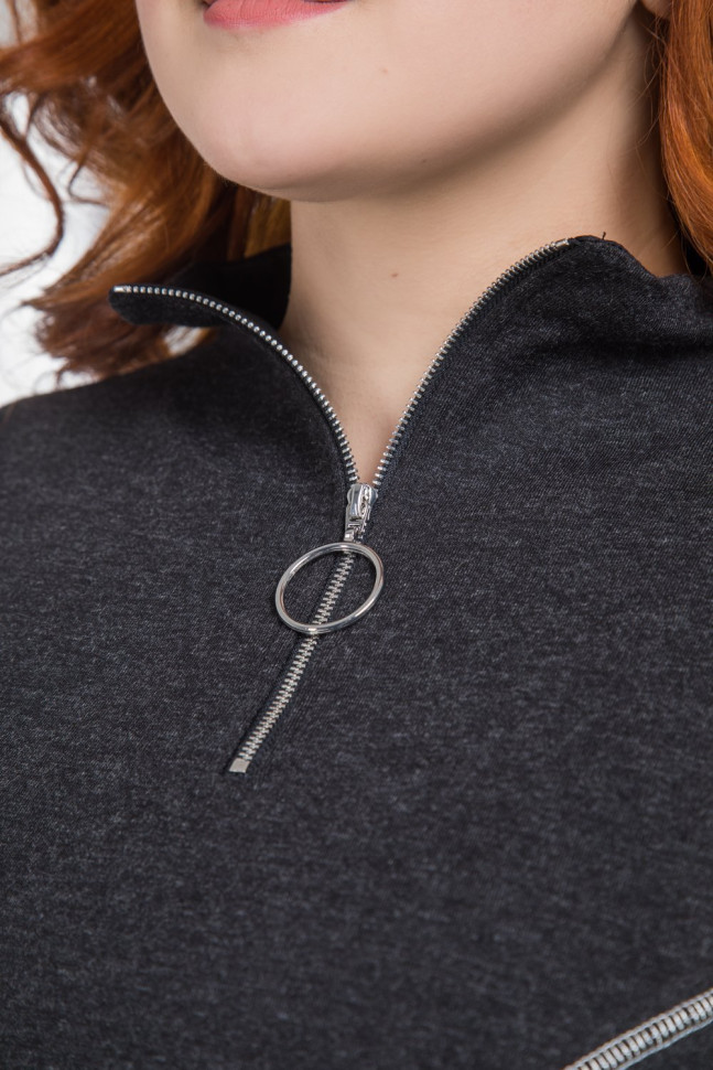 Блуза прямого силуэта с высоким воротником на застежке-молнии и рукавами 3/4.