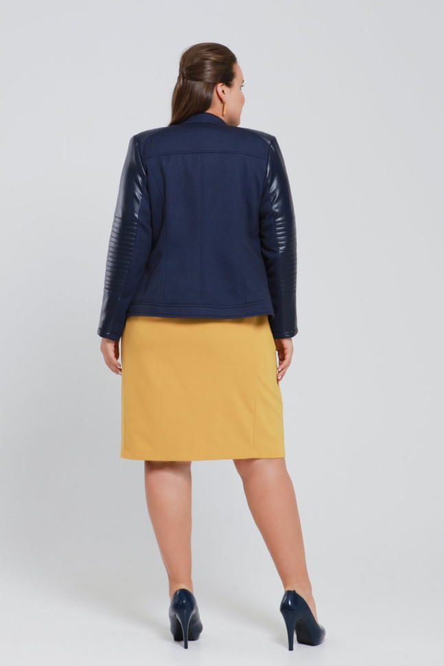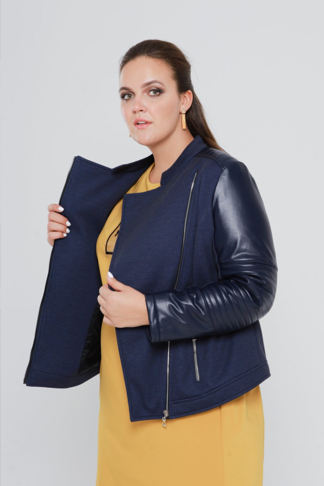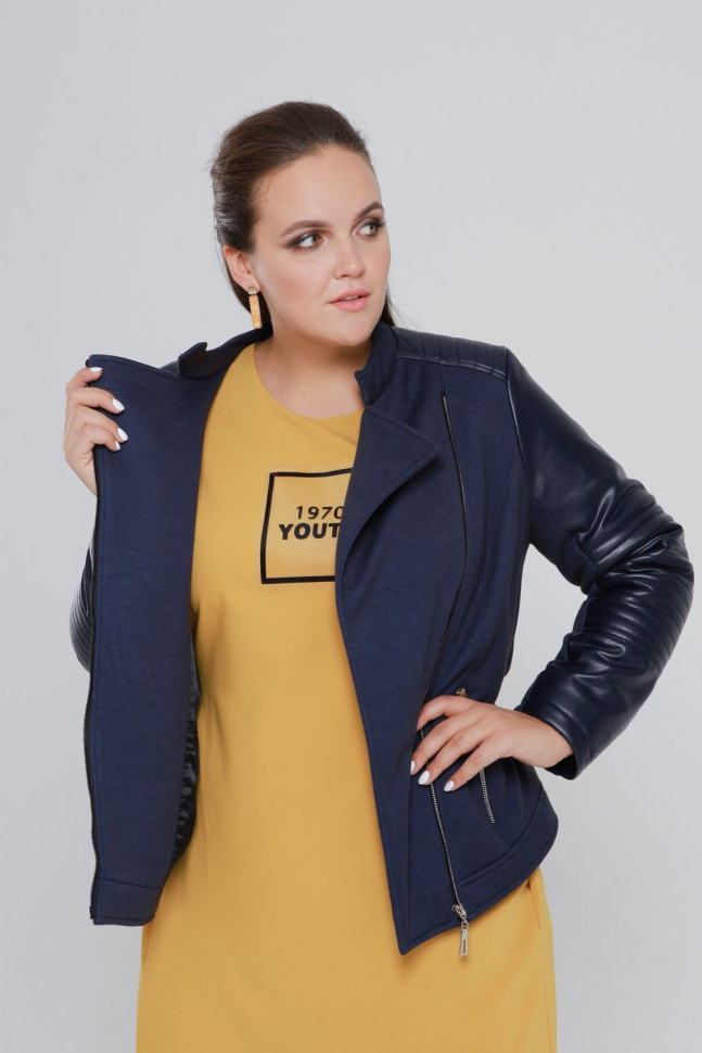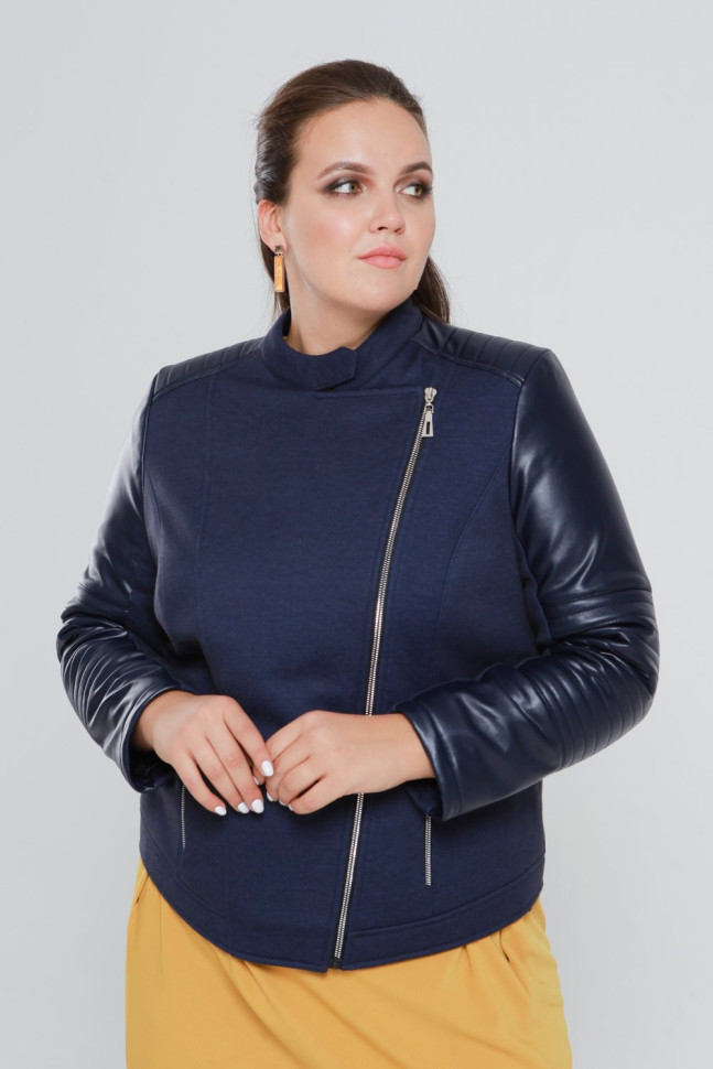 Диагональная молния, рукава из эко-кожи и глубокий синий цвет добавят в Ваш образ бунтарства. То что нужно для осенне-весеннего променада.