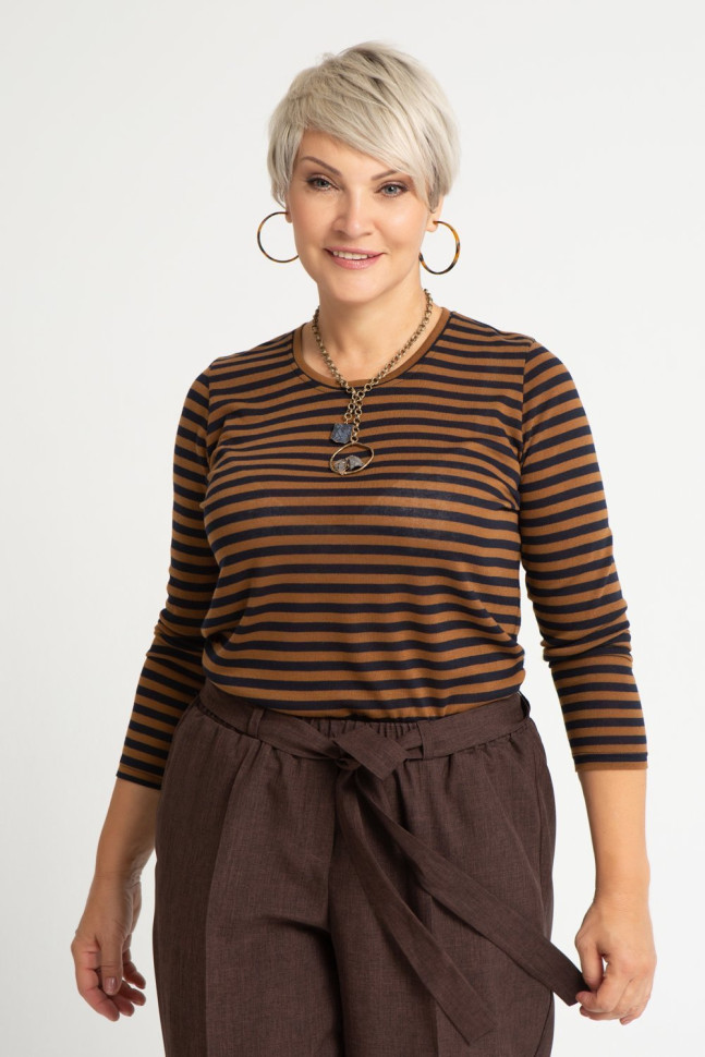 Джемпер из тонкого трикотажа с мягким круглым вырезом горловины. Длинный рукав. Для повседневного стиля.