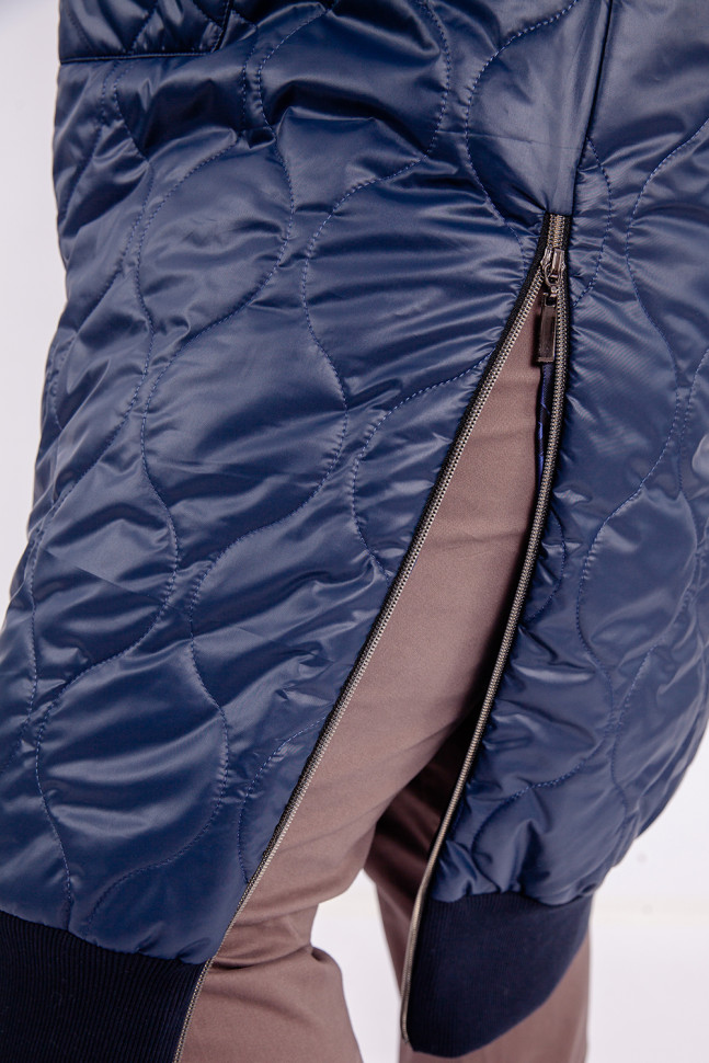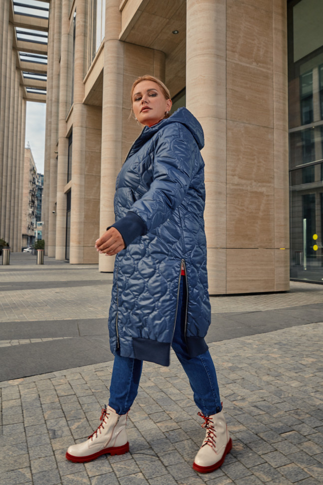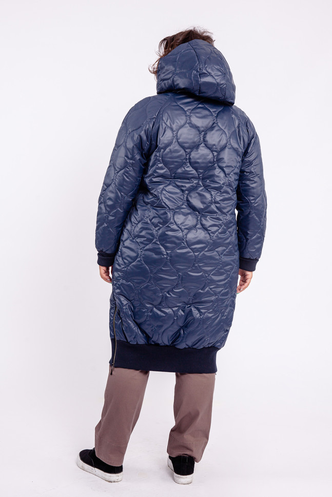 Модное длинное стеганое пальто с длиннй трикотажной резинкой и капюшоном. Ткань плащевая, водоотталкивающая, надёжно защищающая поверхность от влаги и различных загрязнений. Практичная, стильная удлиненная куртка с утеплителем Shelter 100 надежно сохраняет тепло, обеспечивает комфорт и свободу движений. Рассчитана на низкую температуру от +10 до -10 C - для сезона осень, зима, весна. Низ зауженный на резинке, по бокам на молнии. По бокам врезные карманы.