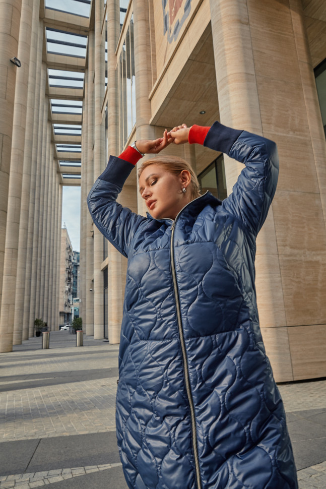 Модное длинное стеганое пальто с длиннй трикотажной резинкой и капюшоном. Ткань плащевая, водоотталкивающая, надёжно защищающая поверхность от влаги и различных загрязнений. Практичная, стильная удлиненная куртка с утеплителем Shelter 100 надежно сохраняет тепло, обеспечивает комфорт и свободу движений. Рассчитана на низкую температуру от +10 до -10 C - для сезона осень, зима, весна. Низ зауженный на резинке, по бокам на молнии. По бокам врезные карманы.Показать больше