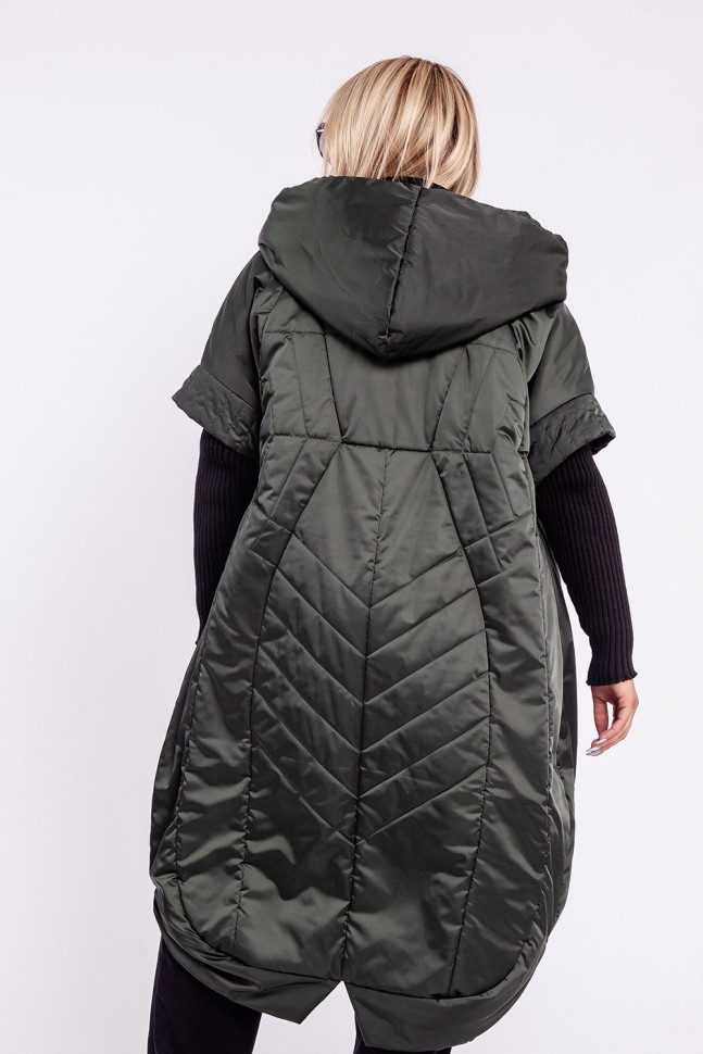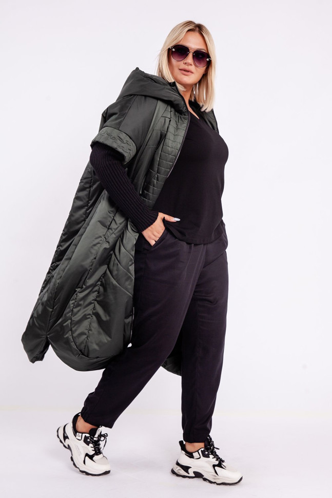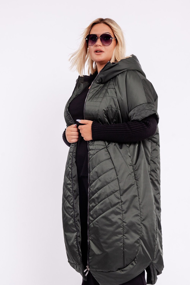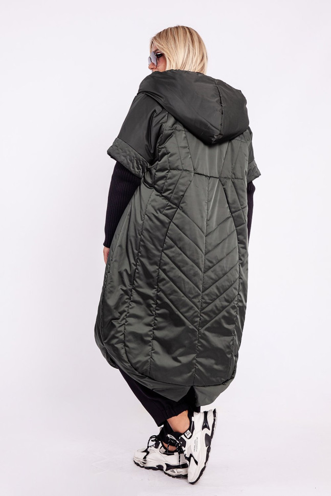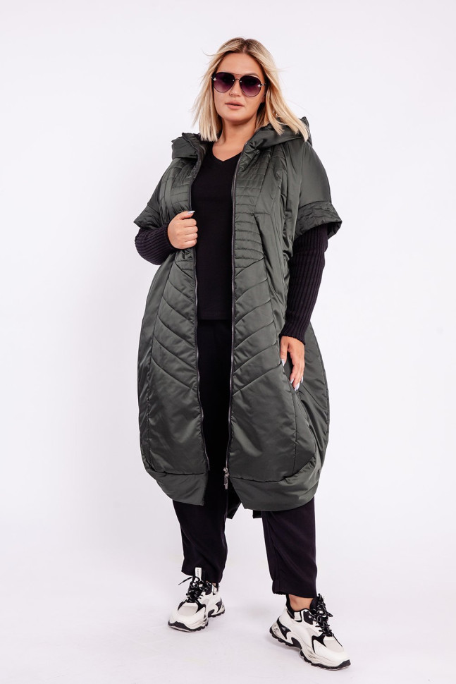 Модное длинное стеганое пальто с длиннй трикотажной резинкой и капюшоном. Ткань плащевая, водоотталкивающая, надёжно защищающая поверхность от влаги и различных загрязнений. Практичная, стильная удлиненная куртка с утеплителем Shelter 100 надежно сохраняет тепло, обеспечивает комфорт и свободу движений. Рассчитана на низкую температуру от +10 до -10 C - для сезона осень, зима, весна.Низ зауженный. По бокам врезные карманы на молнии.