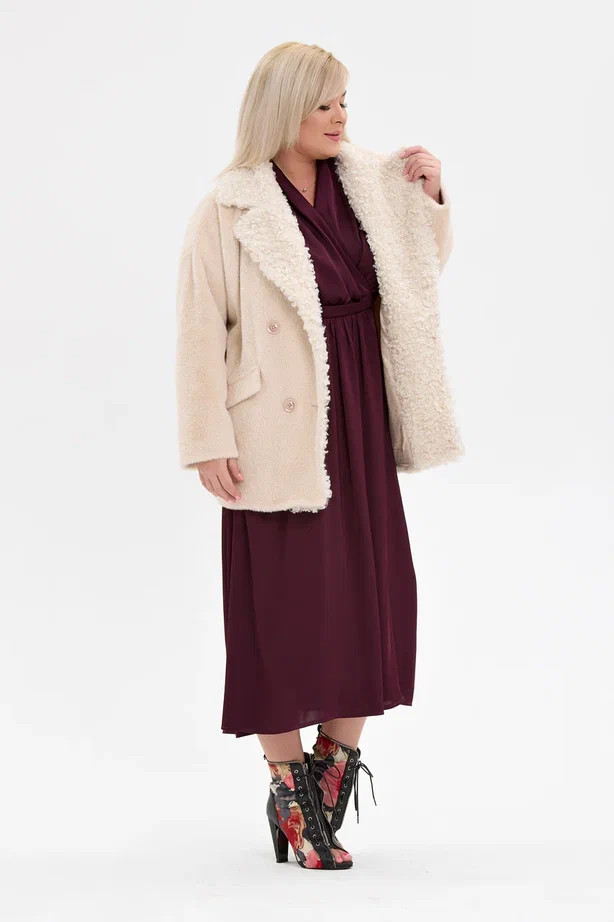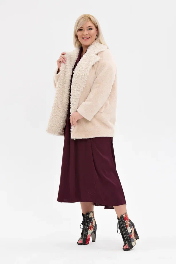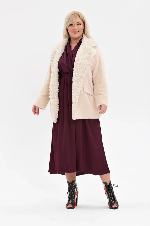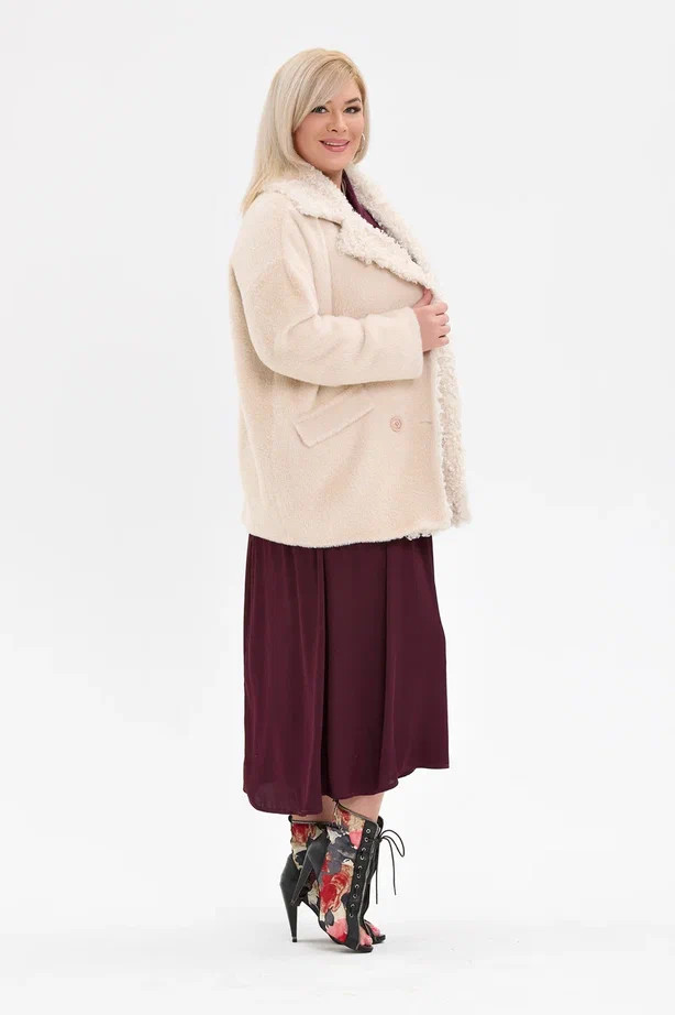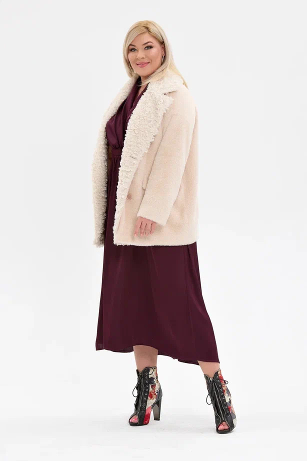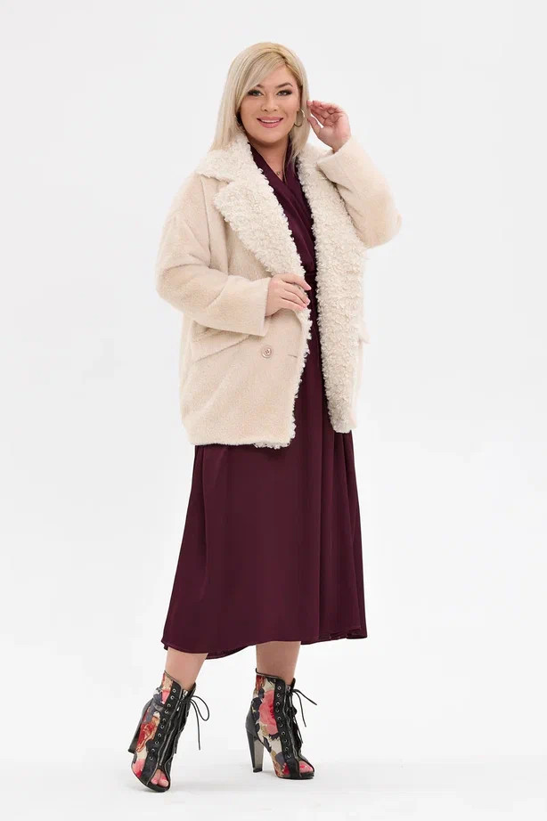 Пальто Торони нежно молочного цвета с 48 по 62 размер. Состав гипоаллергенный, ЭКО мех. Длина закрывает бедра. Пальто на пуговицах, рукав спущенный, невероятно красивый ЭКО мех придает красоту отложному воротнику. Это пальто вы сможете носить и с платьями, и с брюками. Выдерживает температуру до -5 градусов.Показать больше