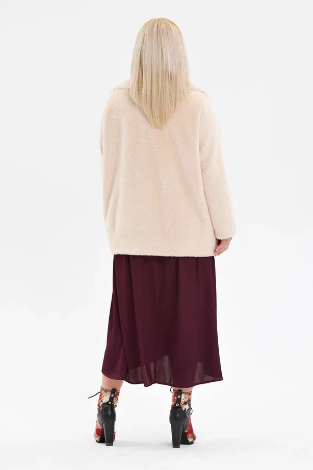 Пальто Торони нежно молочного цвета с 48 по 62 размер. Состав гипоаллергенный, ЭКО мех. Длина закрывает бедра. Пальто на пуговицах, рукав спущенный, невероятно красивый ЭКО мех придает красоту отложному воротнику. Это пальто вы сможете носить и с платьями, и с брюками. Выдерживает температуру до -5 градусов.