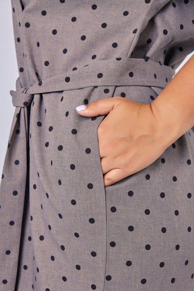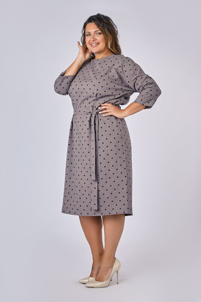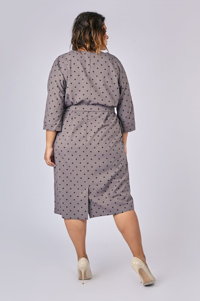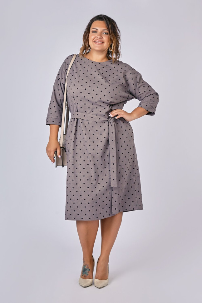 Платье прямого кроя, с поясом, втачными карманами и шлицей.