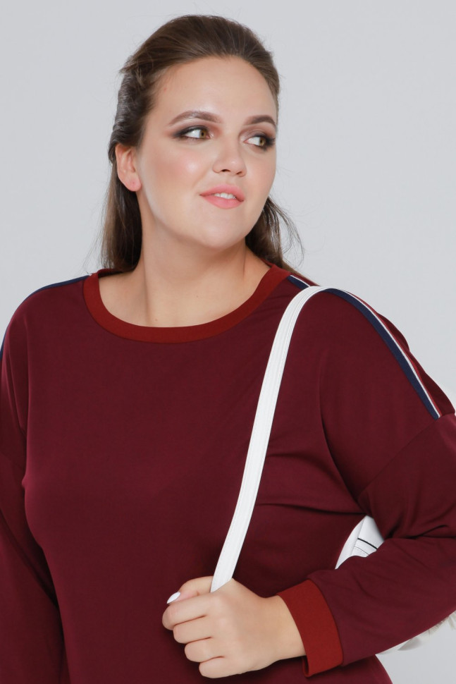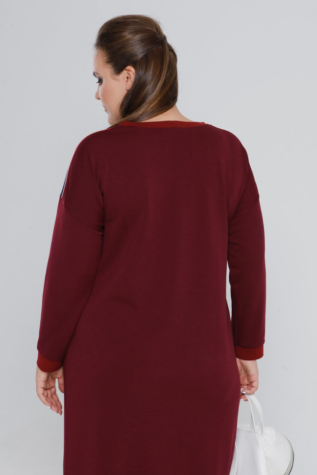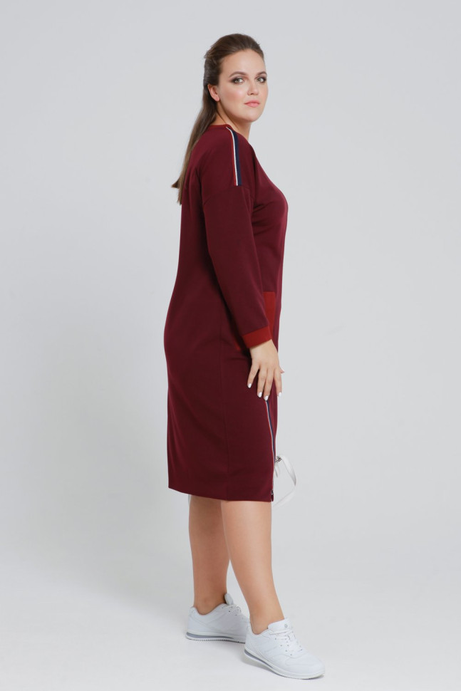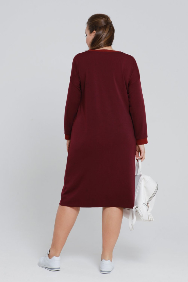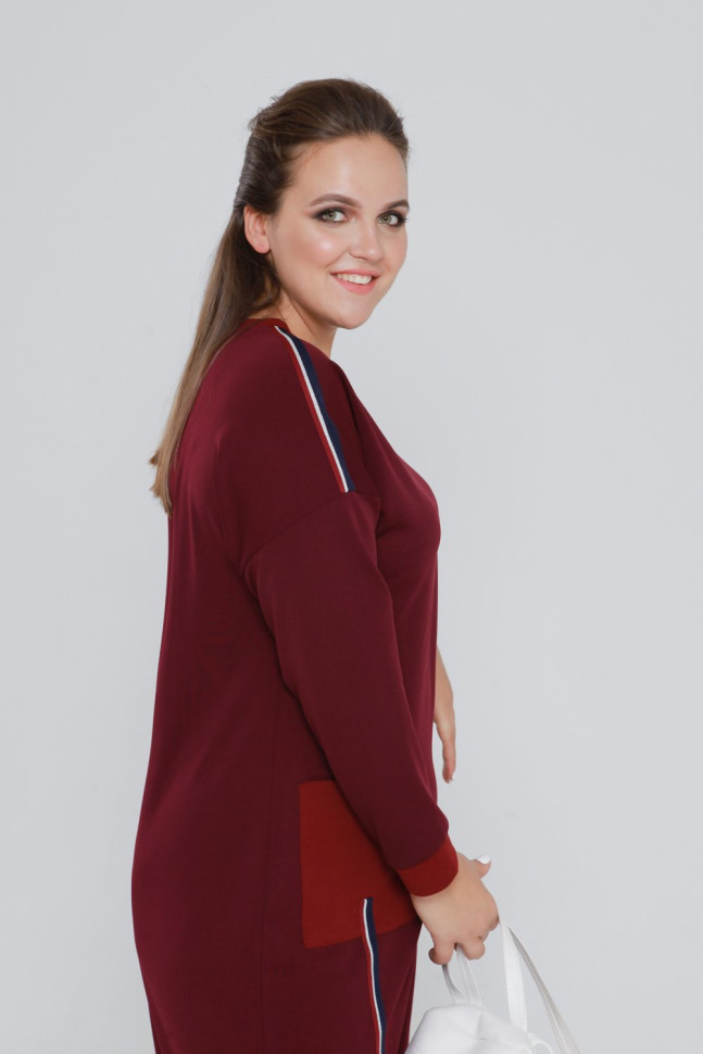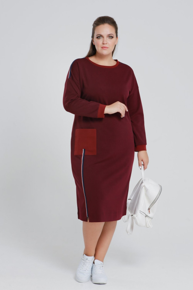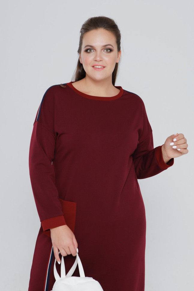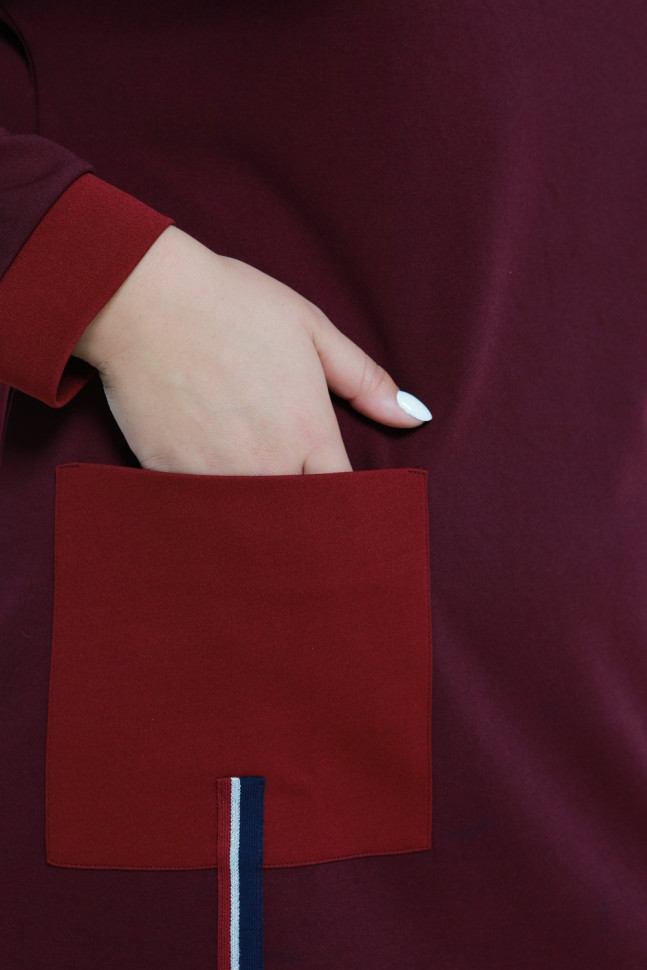 Удобное, приятное к телу платье для Вашего повседневного образа. Красивый бордовый цвет ткани мягко контрастирует с ягодного цвета манжетами, карманом и оконтовкой выреза. Тонкие, неброские вставки добавляют изделию свою "изюминку".