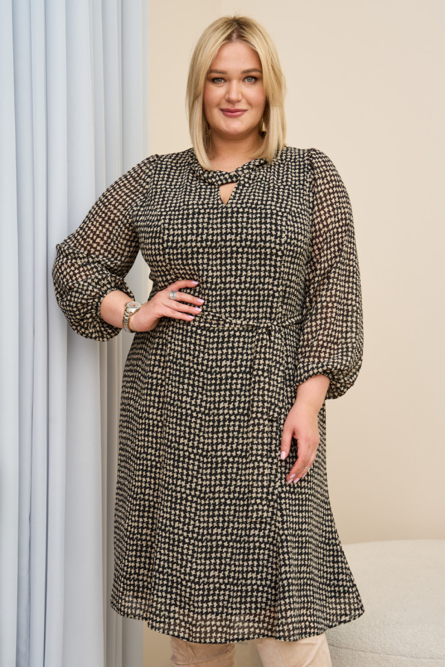 Элегантное, женственное платье выполнено из легкого струящегося шифона на дышащей подкладке из шифона. Модель платья дарит комфорт и удобство на протяжении всего дня. Платье дополнено длинным поясом из основной ткани. Утонченный и изящный силуэт, красиво подчеркивает достоинства. Длинный свободный рукав придает движениям воздушности.