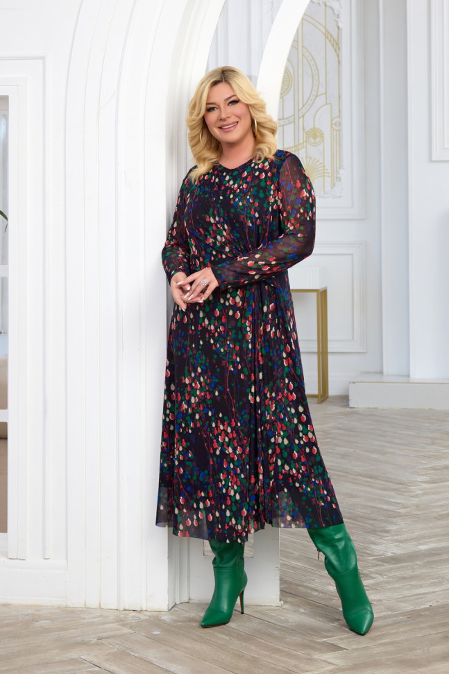 Платье Лейла в невероятно привлекательном ярком принте на фиолетовом фоне, сделает вас неотразимой! Легкая, нежная сетка из 100% пэ на вискозной подкладке придает легкость образу. Длинна платья миди. Отлично подходит любому типу фигур придавая стройнящий эффект. Хочешь быть в центре внимания, чувствовать себя комфортно и выглядеть неотразимо - тогда платье Лейла именно для тебя! Количество ограничено, успей приобрести!