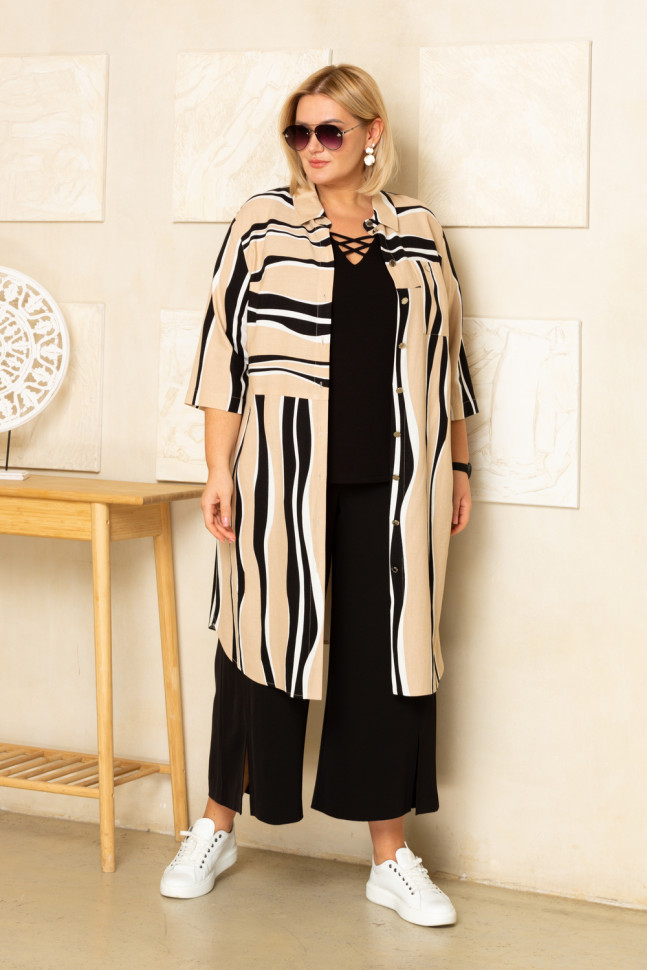 Платье рубашка - это беспроигрышный универсальный вариант на любой случай, Вы всегда будете в тренде. Контрастный принт делает Ваш образ ярким и не забываемым. Изготовлено из хлопка, приятного к телу. Рубашечный крой и прямой силуэт подойдёт любому типу фигуры, поможет скрыть некоторые несовершенства и подчеркнуть достоинства фигуры. Платье рубашка - это про стиль, моду и изысканный вкус. С платьем рубашкой можно создавать многослойные образы, а также одевать как самостоятельную вещь, Ваши образы будут стильными, актуальными и всегда элегантными. Детали: рукав ¾, воротник отложной стойка, застёжка на пуговицы металлические, ассиметричный крой, подрез на правой стороне, карман и кокетка на левой стороне переда, карманы в боковых швах, фигурный разрез по боковым, кокетка по спинке.