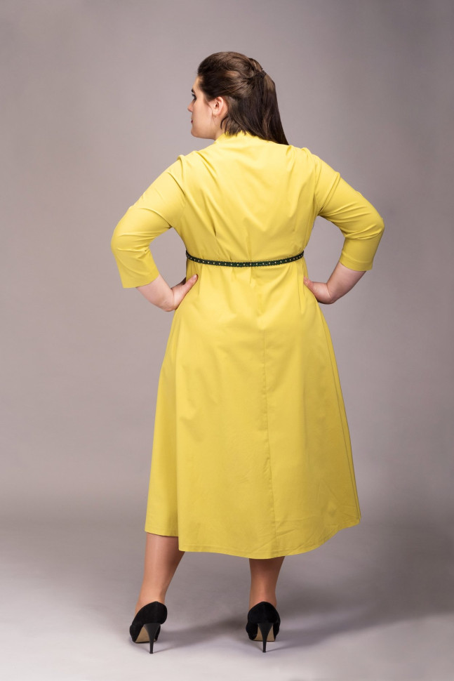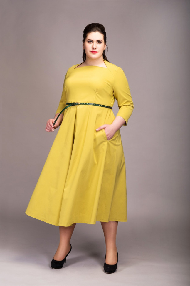 Платье прилегающего силуэта с расклешенным подолом из костюмной х/б ткани с добавлением эластана. Фигурный вырез горловины и мягкая складка по центру подола образуют плавные линии, выстраивающие основу силуэта. Втачные рукава 3/4 и функциональные боковые карманы делают модель удобной и практичной. Тонкий пояс или ремень помогут подчеркнуть талию и создать закончнный образ. Сочетайте с болеро N402-02-14, жакетом 4249 или 62-030005-131.