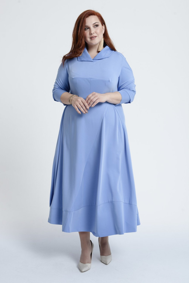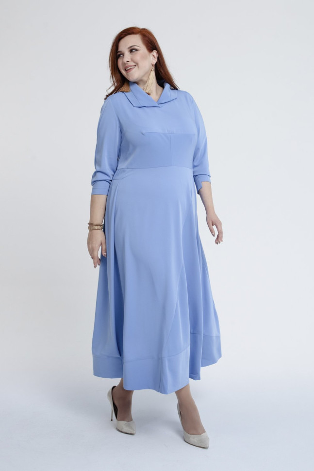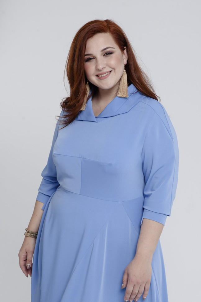 Нежное платье голубого оттенка отличается необычным кроем и женственным шармом. Асимметрия тонкой нитью идёт через всё изделие: воротник, удлинённая спинка рукава и низ отрезной юбки перекликаются между собой и создают интересный эффект. Длина миди, рукав на широкой манжете укорочен. Модель выполнена из плательной ткани, в составе содержит 52% вискозы.Показать больше