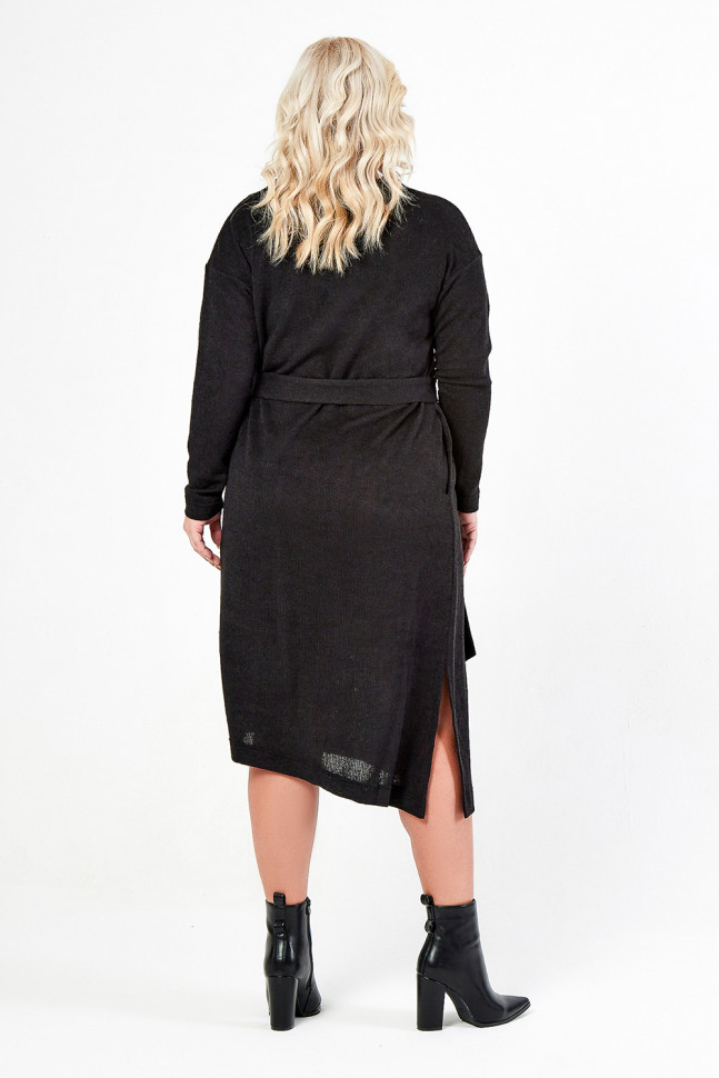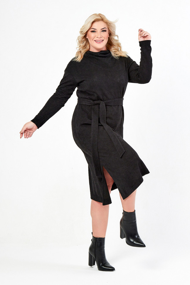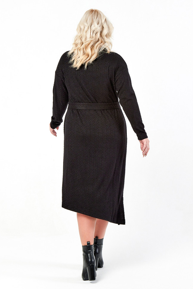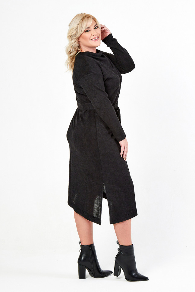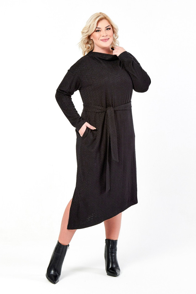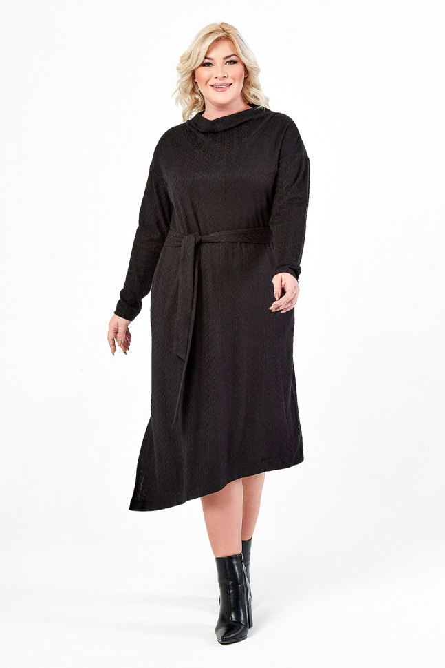 Платтье с воротником стойкой ассиметричной формы. Текстура ткани рубчик.