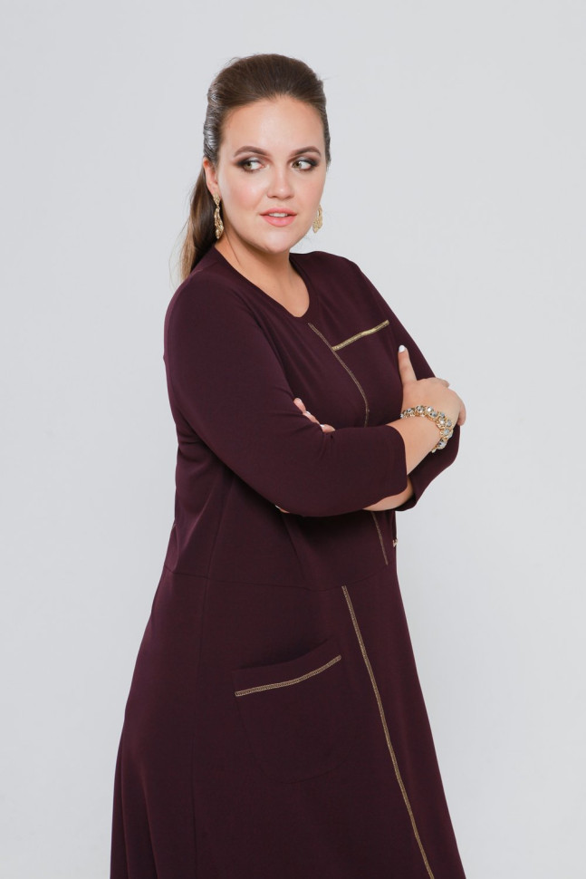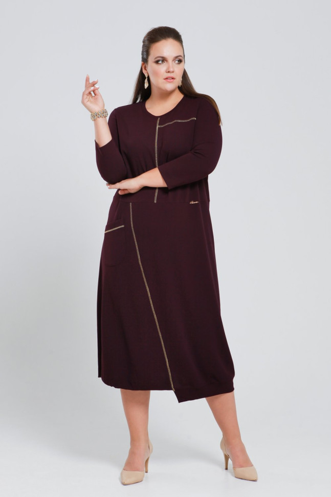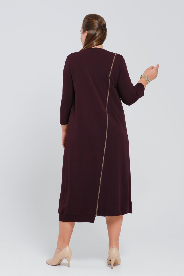 Комфортное, повседневное платье, вне всяких сомнений - одна из популярнейших вещей в нашем гардеробе. Удобное, приятное к телу платье цвета "Баклажан". Рукава 3/4, ассиметричный модный подол и практичный, аккуратный кармашек.