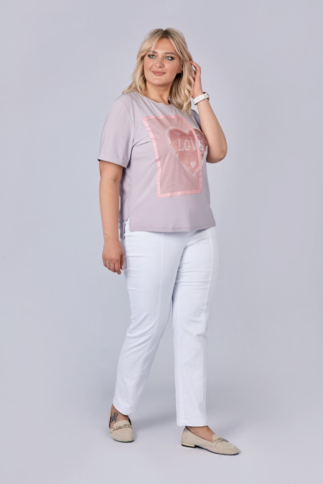 Нежный топ с набивным принтом. Состав 30% вискоза, 62% полиэстер, 8% эластан.