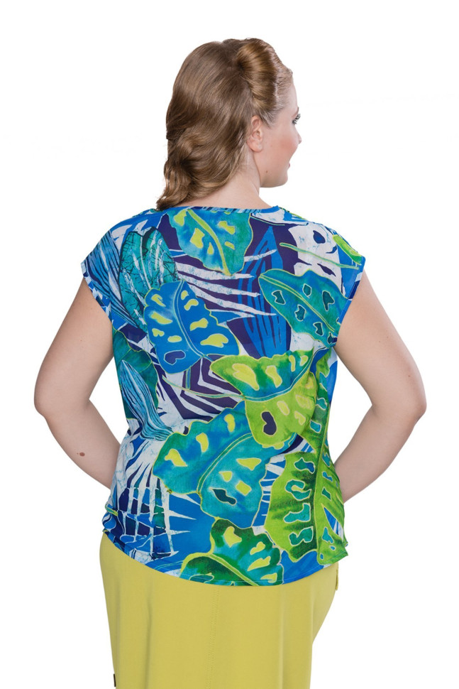 Легкая, нежная блуза с вырезом "качелька". Приспущенное плечо сделает силуэт мягче. Полуприлегающий силуэт скроет несовершенства фигуры. Яркий тропический принт подарит ощущение безмятежности отпуска. А леопардовый рисунок добавит образу смелости. Выбирайте свой вариант расцветки и создавайте стильные образы. Носите с юбкой 61-040008-116