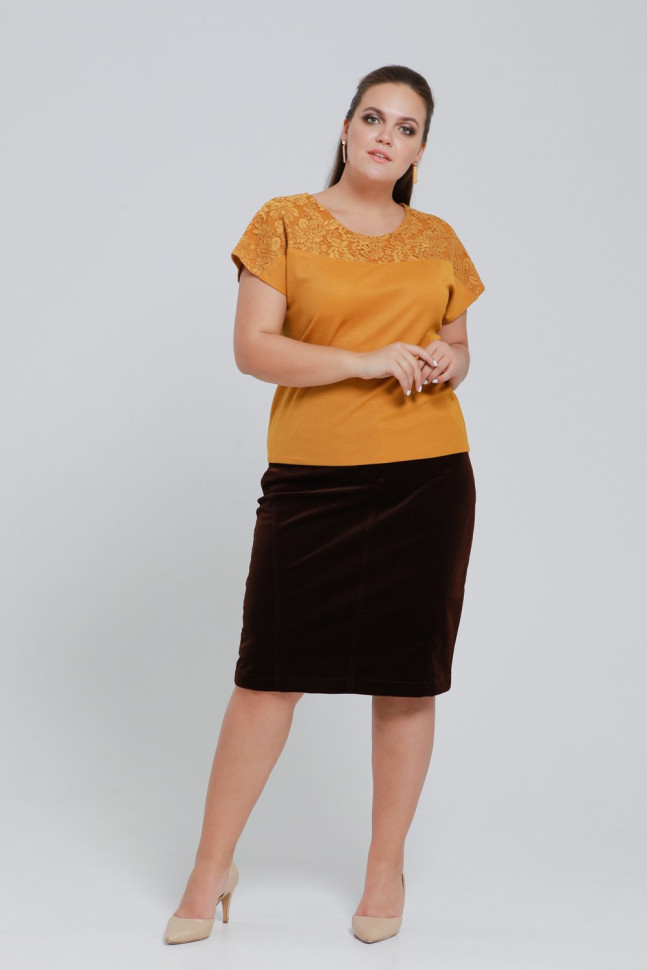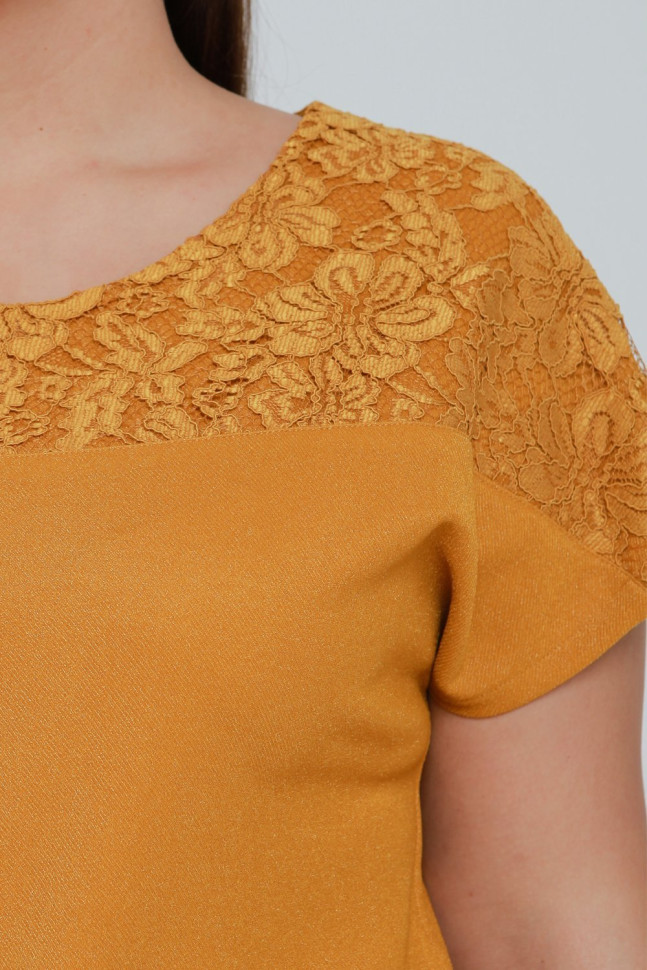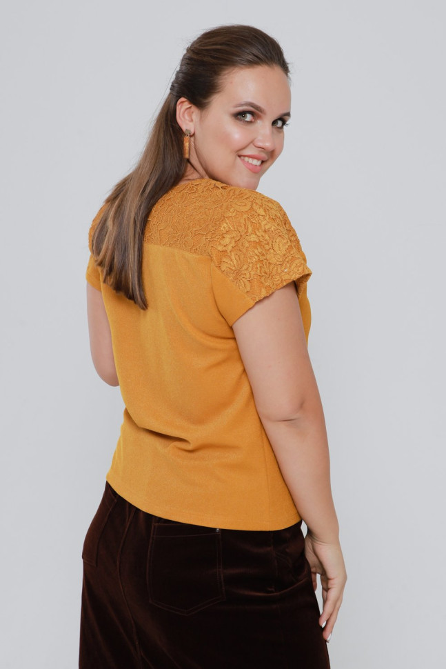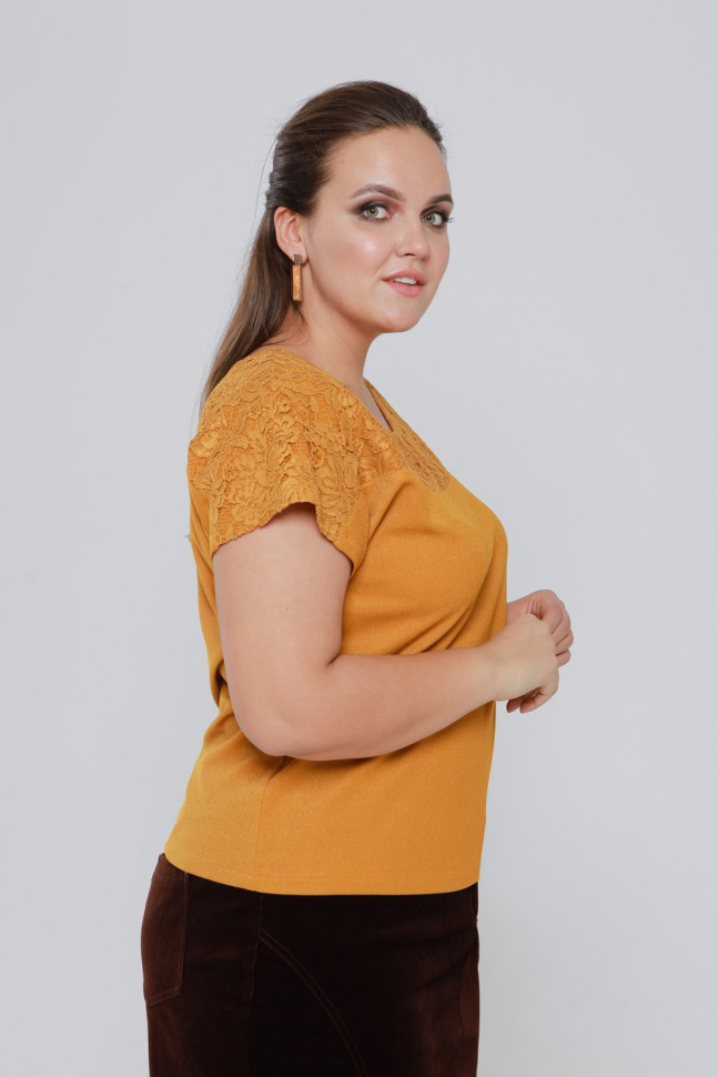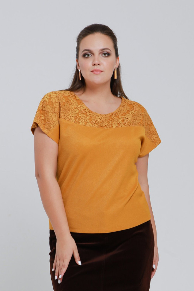 Яркий топ с классическим коротким рукавом станет универсальной вещью в Вашем гардеробе. Аккуратный круглый вырез подчеркивает шею. Верхняя часть изделия декорирована изящным кружевом. Легко сочетаем практически с любой юбкой, а так же джинсами или брюками. В составе 65% вискозы.