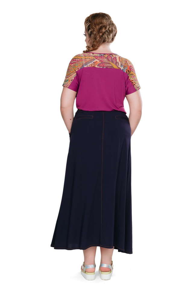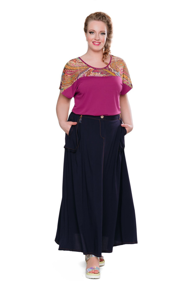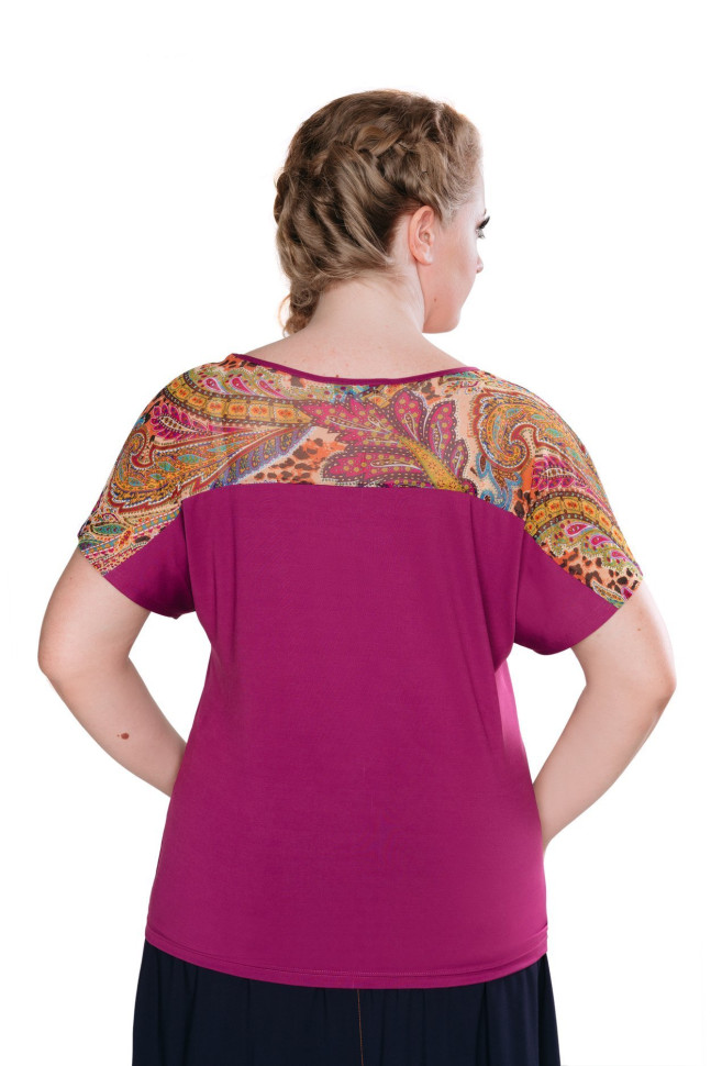 Трикотажный топ насыщенного бордового цвета. Кокетки переда и спинки из отделочного стрейч-шифона с принтом в тон. Мягкое спущенное плечо. Круглая плавная горловина. Яркий акцент любого образа. Носите под пиджак, кардиган, блейзер или в качестве самостоятельного верха. Модный фиолетовый цвет сочетается с белым, черным, синим, желтым, зеленым и всеми их оттенками. Идеальный комплект составит с юбками 171226 синий и 62-040011-095