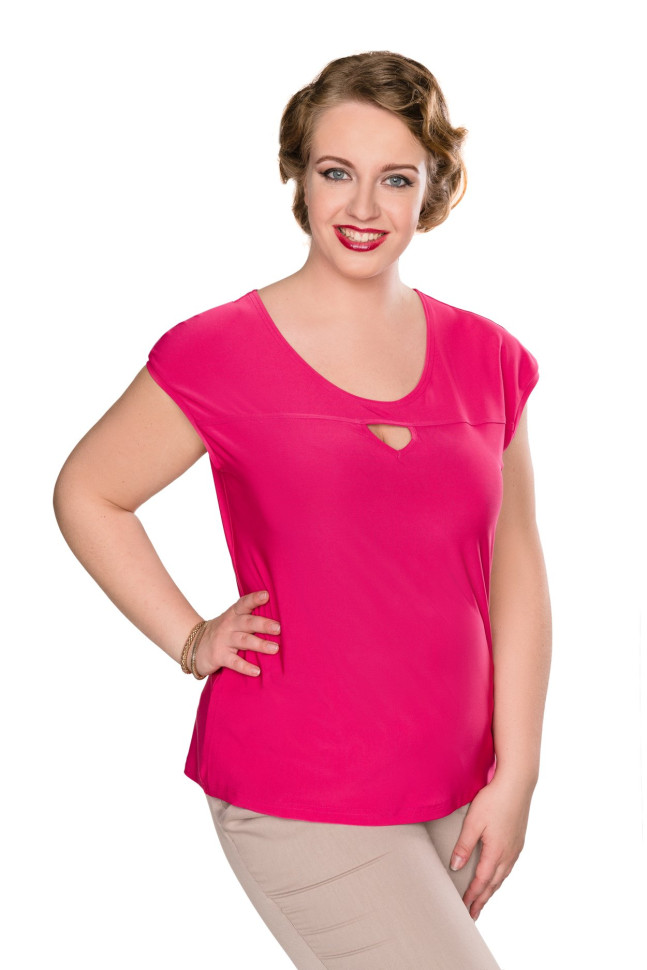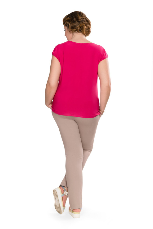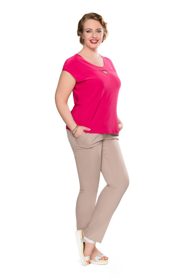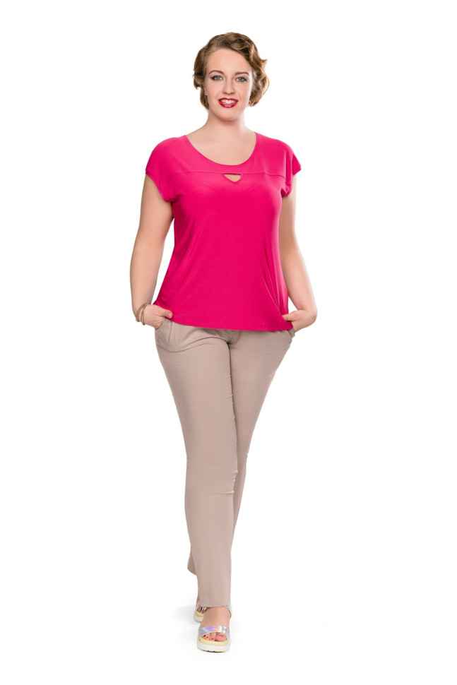 Топ из трикотажного полотна со спущенным плечом. Круглая горловина оформлена фигурным вырезом под кокеткой. Базовй топ для создания повседневных образов. Носите под пиджак, блейзер, кардиган или в качестве самостоятельного верха. Сочетайте с юбками 15L-1-305-042, 63-040015-201 и брюками 171223кофе