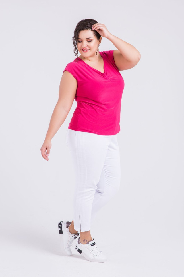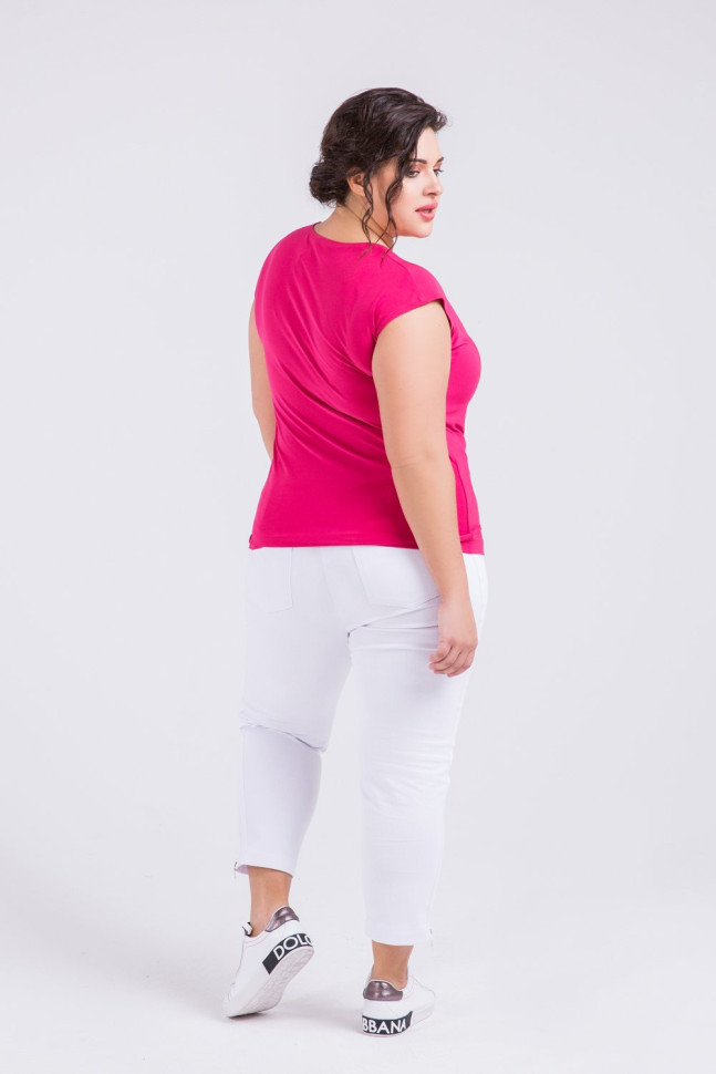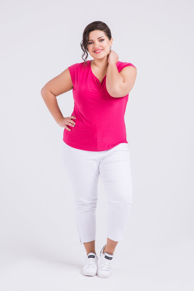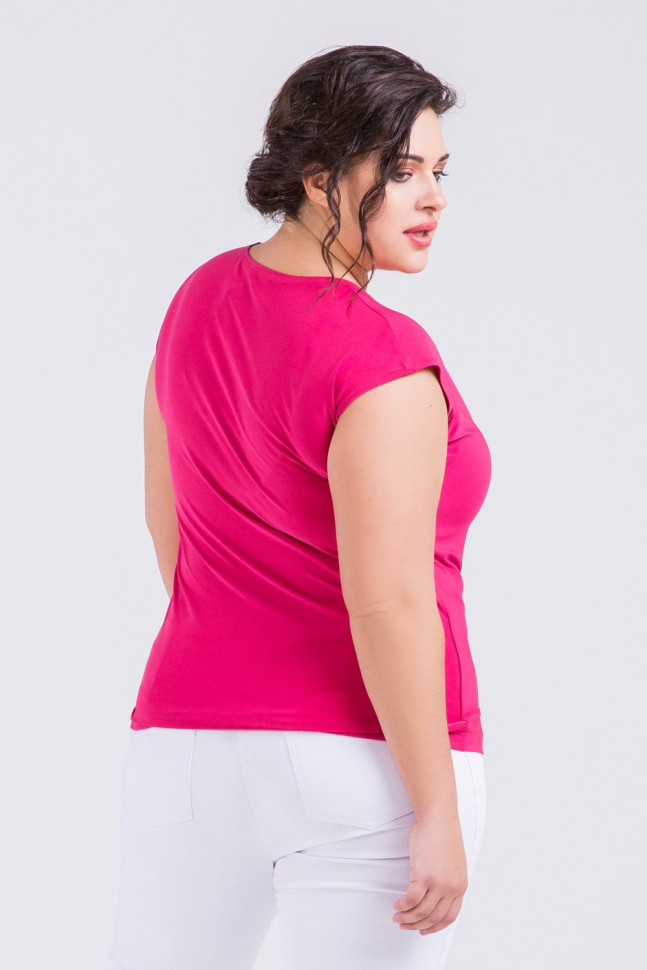 Трикотажный топ в ярко розовом оттенке подчеркнёт Вашу неординарную натуру. Изделие прекрасно садится на фигуру, а преобладание вискозы в составе обеспечивает комфортную носку.