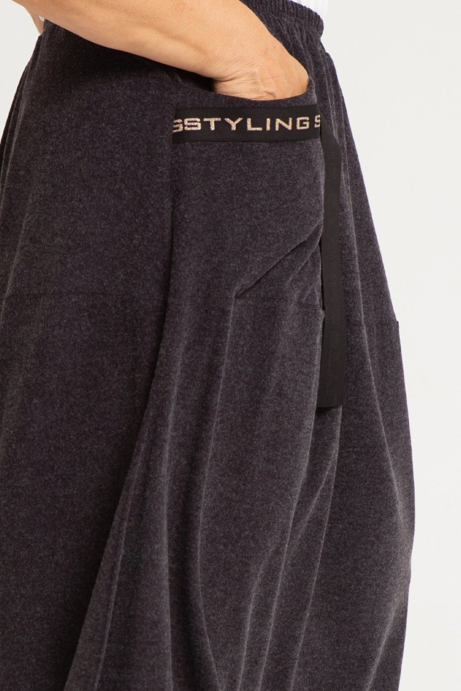 Оригинальная трикотажная юбка. Пластичная фактура ткани легко драпируется, формируя красивые формы складки в боковых швах. Идеальную посадку по линии талии обеспечивает эластичный пояс на резинке. Два накладных кармана декорированы лентами. Практичный и удобный вариант для повседневного стиля. Состав 77% Вискоза, 18%ПЭ, 5%ЭластанПоказать больше