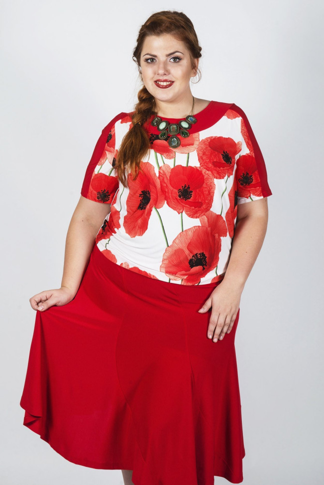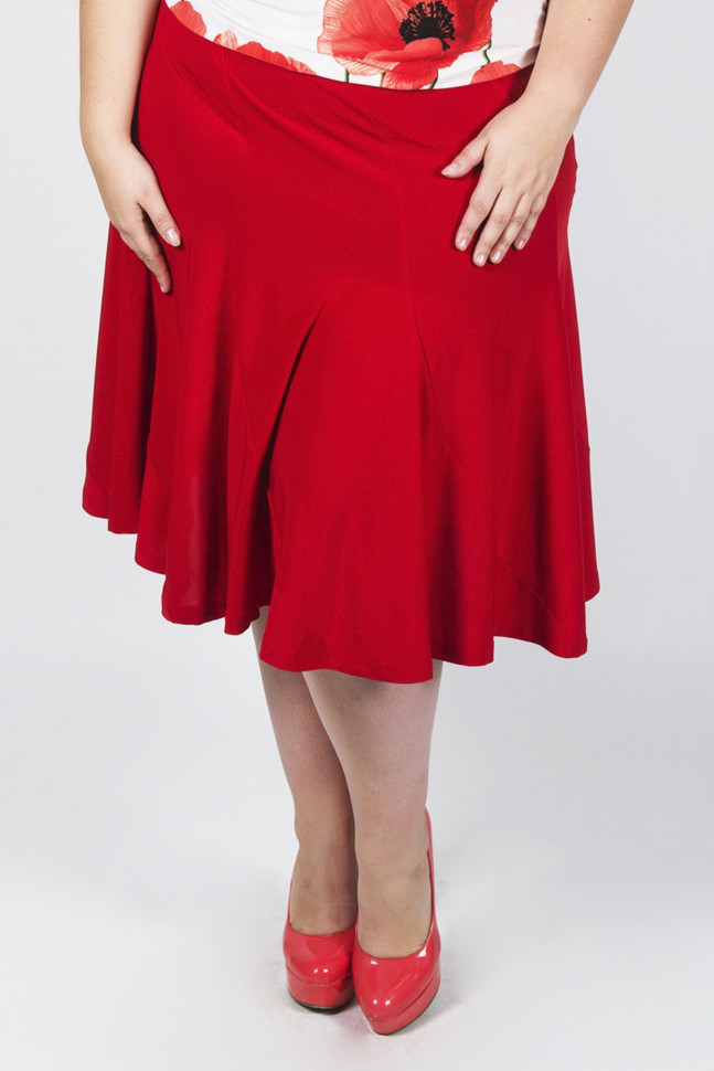 Яркая трикотажная юбка из 8 косых клиньев. Комфортность посадки обеспечивает пояс, выполненный в виде широкой эластичной резинки. Клинья создают мягкие складки. Выразительная юбка просится на сцену, зажигательно танцевать и очаровывать. Составит комплект с топами 15L-1-521, 72-090005-015 и блузой 62-020018-011