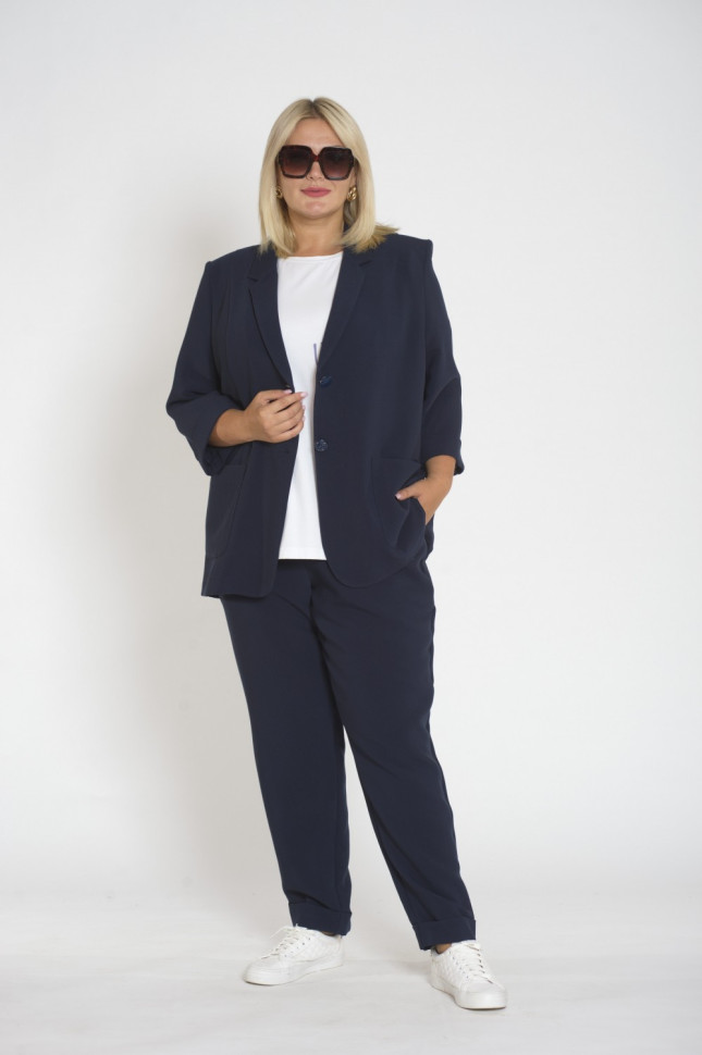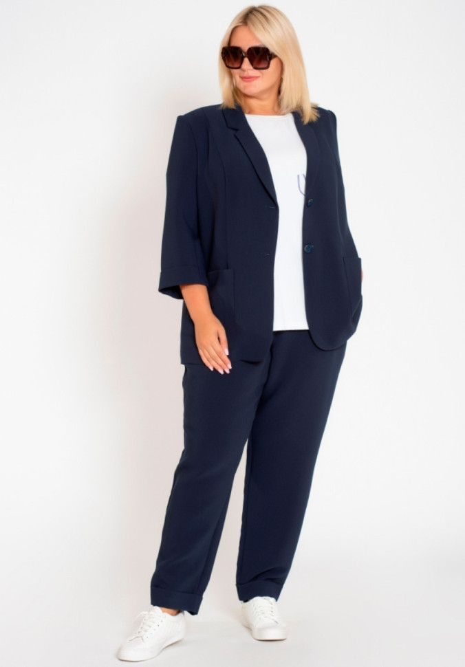 Жакет из плотной ткани без подклада. Жакет с английским воротником. Два накладных кармана.Комплект к жакету составляют Брюки 16085-35-04-2 синий.