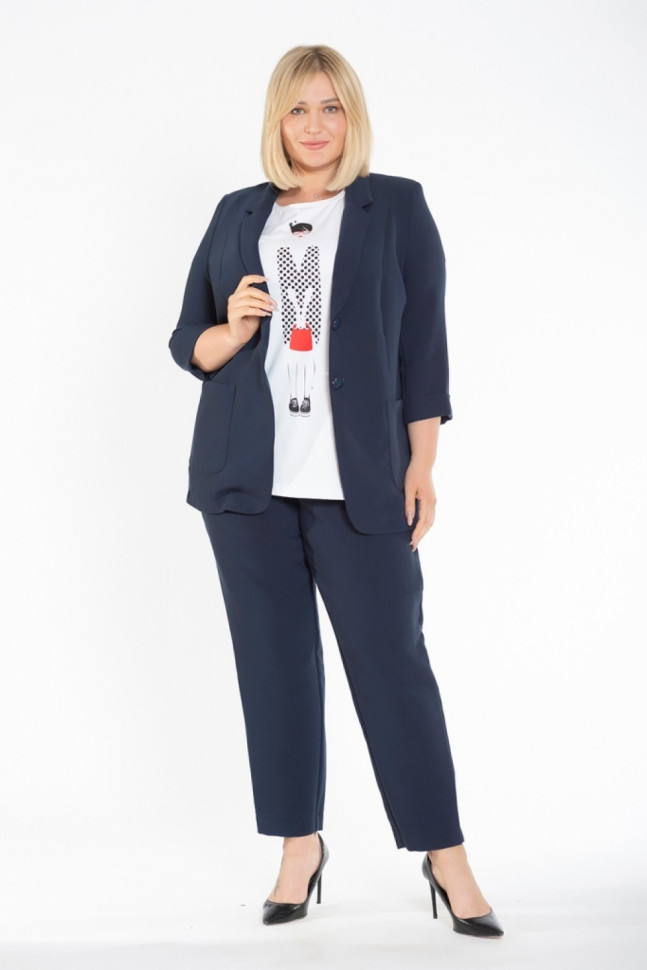 Комплект к жакету составляют Брюки 16023-37-28 синий.