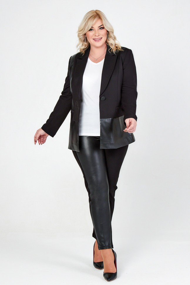 Приталенный однобортный жакет. Воротник отложной классический. Застежка на одгу пуговицу.
